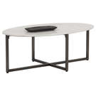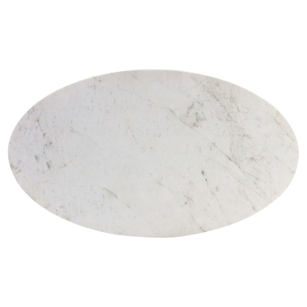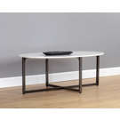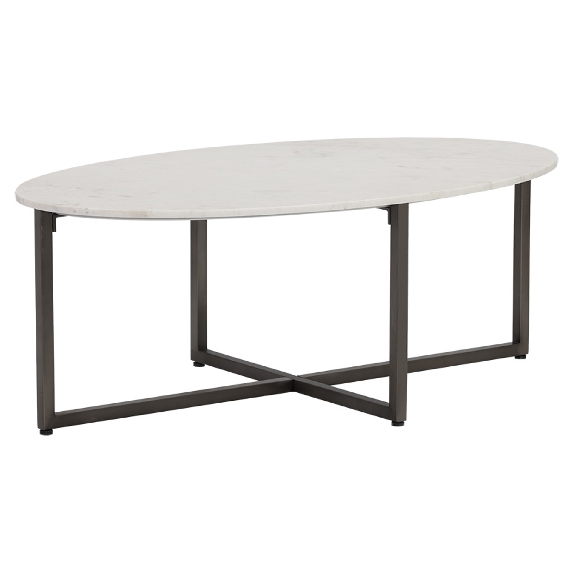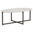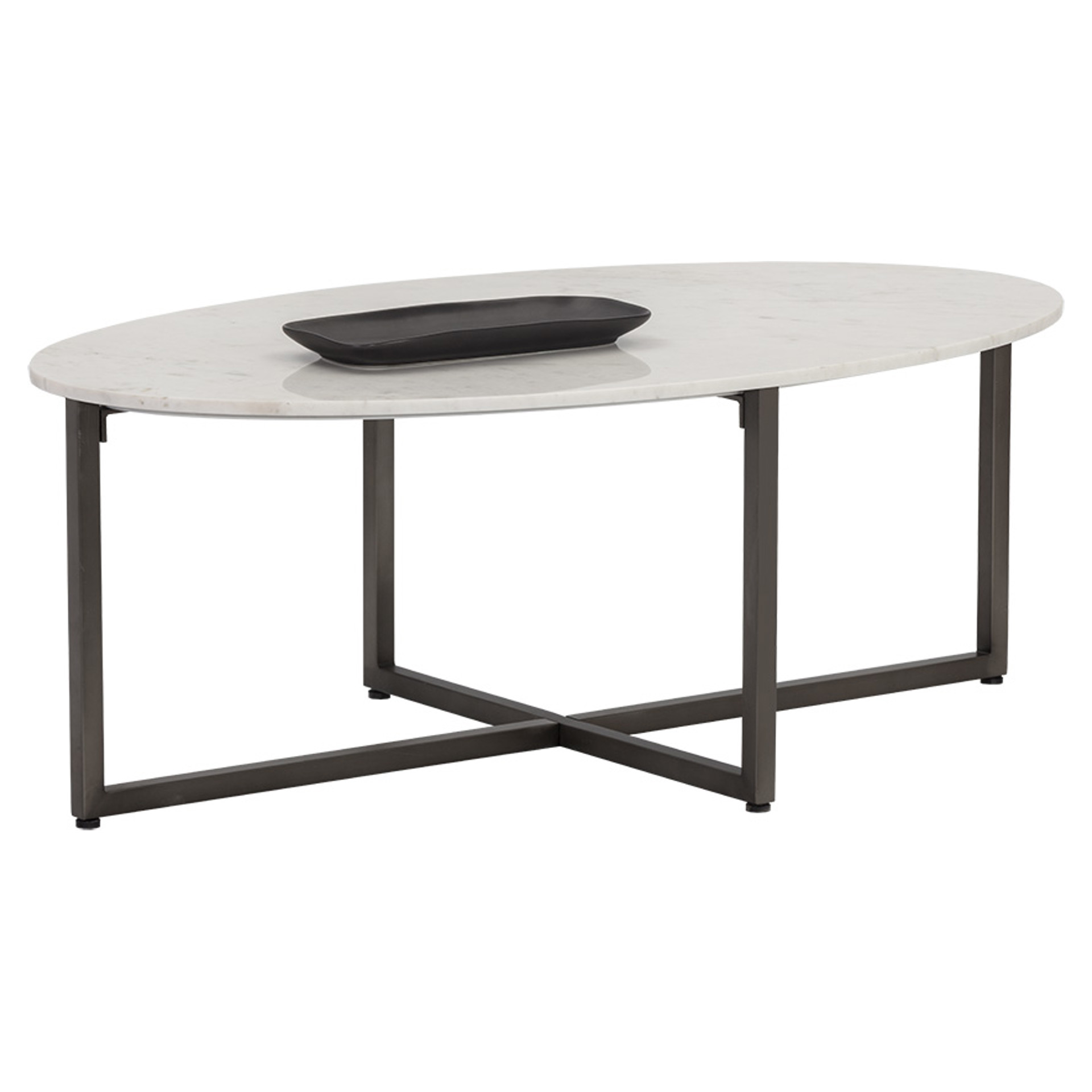 Cette table à café allie parfaitement forme et fonction pour transformer votre espace de vie. Son plateau ovale en marbre blanc veiné apporte une touche d'élégance naturelle, tandis que sa base en métal noir mat offre une stabilité remarquable grâce à sa structure croisée ingénieuse.