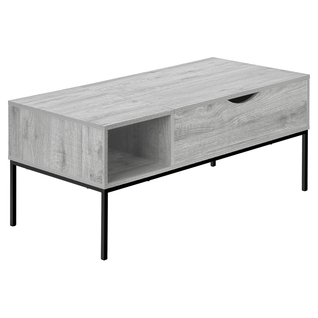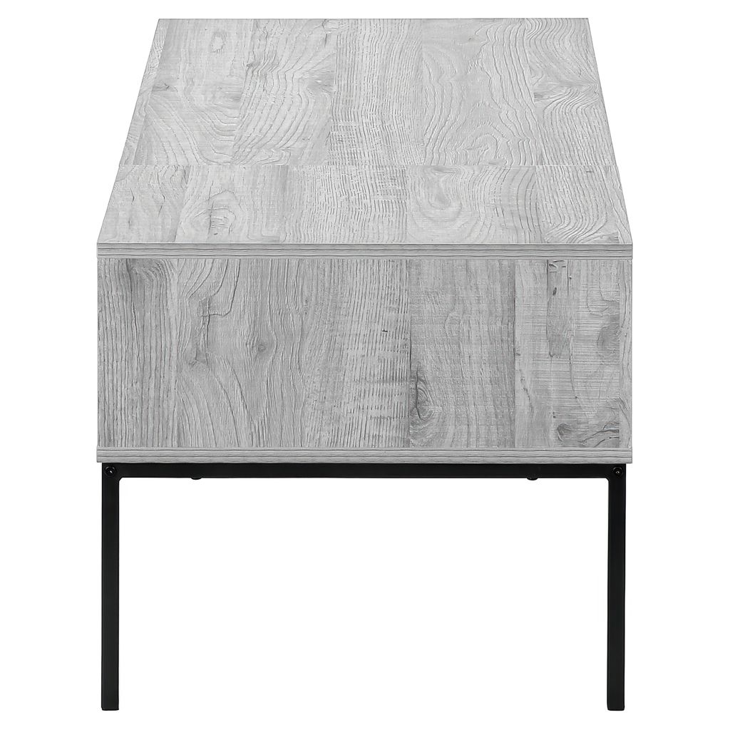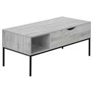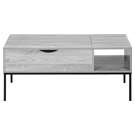 Cette table basse de style contemporain sera l'élément central de votre salon. Avec sa structure en métal noir, élégante et durable, et son plateau rectangulaire de 42 pouces de long en finition moderne aspect bois gris, elle est la combinaison parfaite du style et de l'aspect pratique.