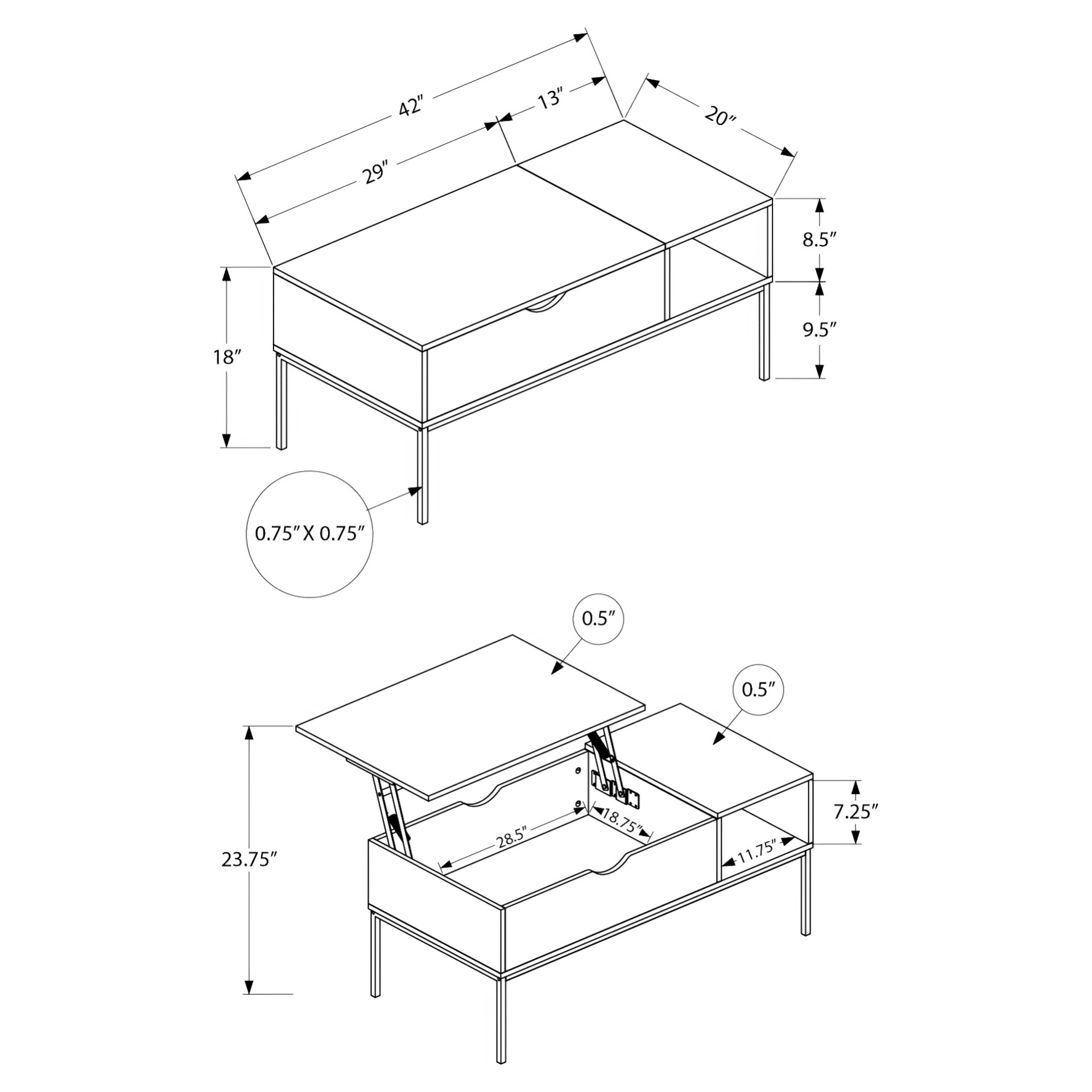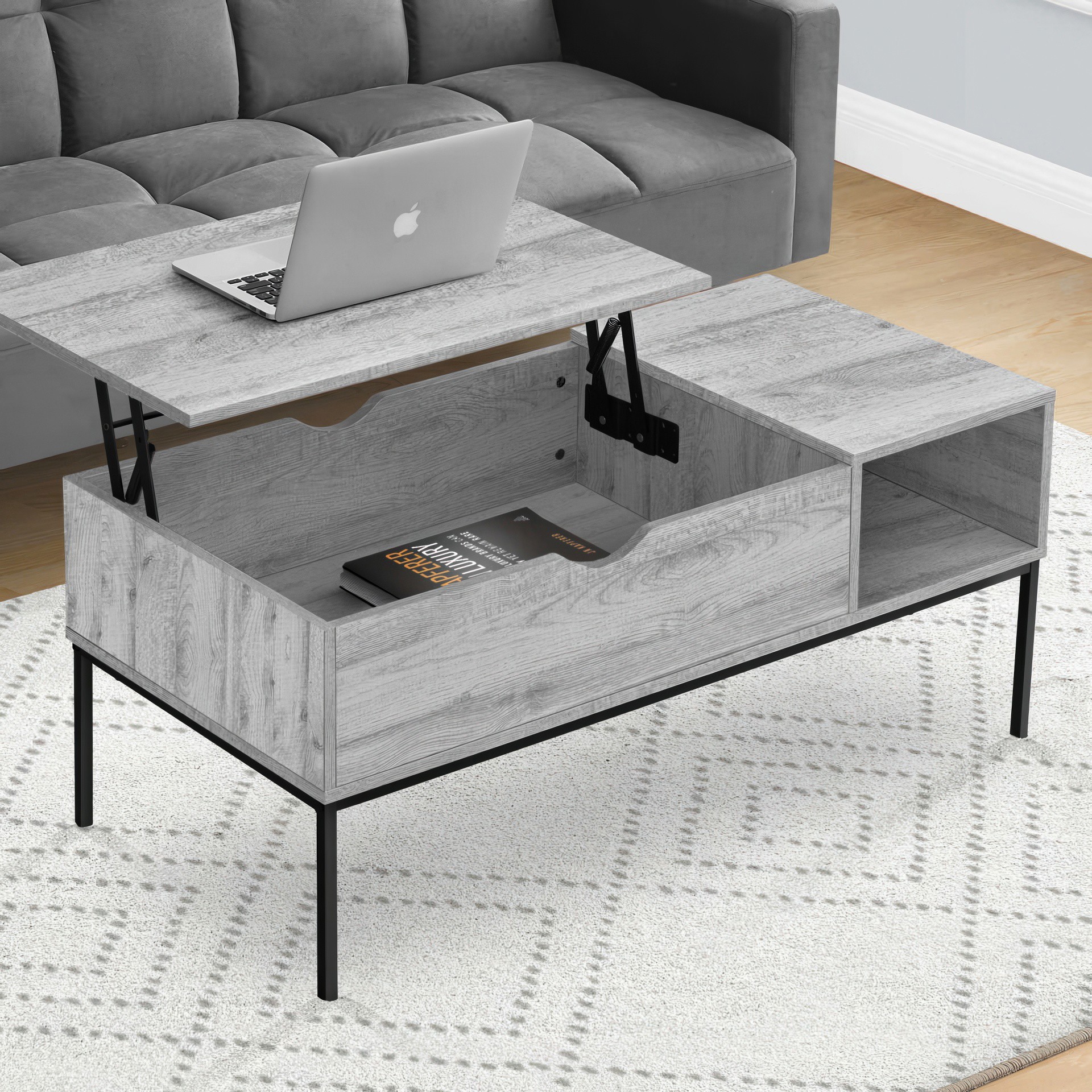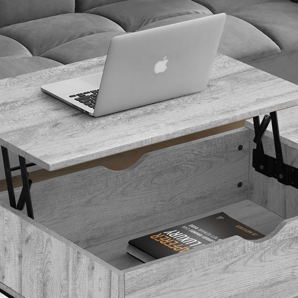 Le plateau relevable vous permet de l'approcher pour travailler sur votre ordinateur portable, prendre un repas, tout en offrant un espace de rangement caché pour les accessoires, les livres et les magazines. Une fois que le plateau facile à nettoyer est remis en place, vous disposez d'une table de cocktail spacieuse pour recevoir!