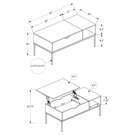 Table à café Série 3805 avec dessus élévateur Monarch Specialties I 3805