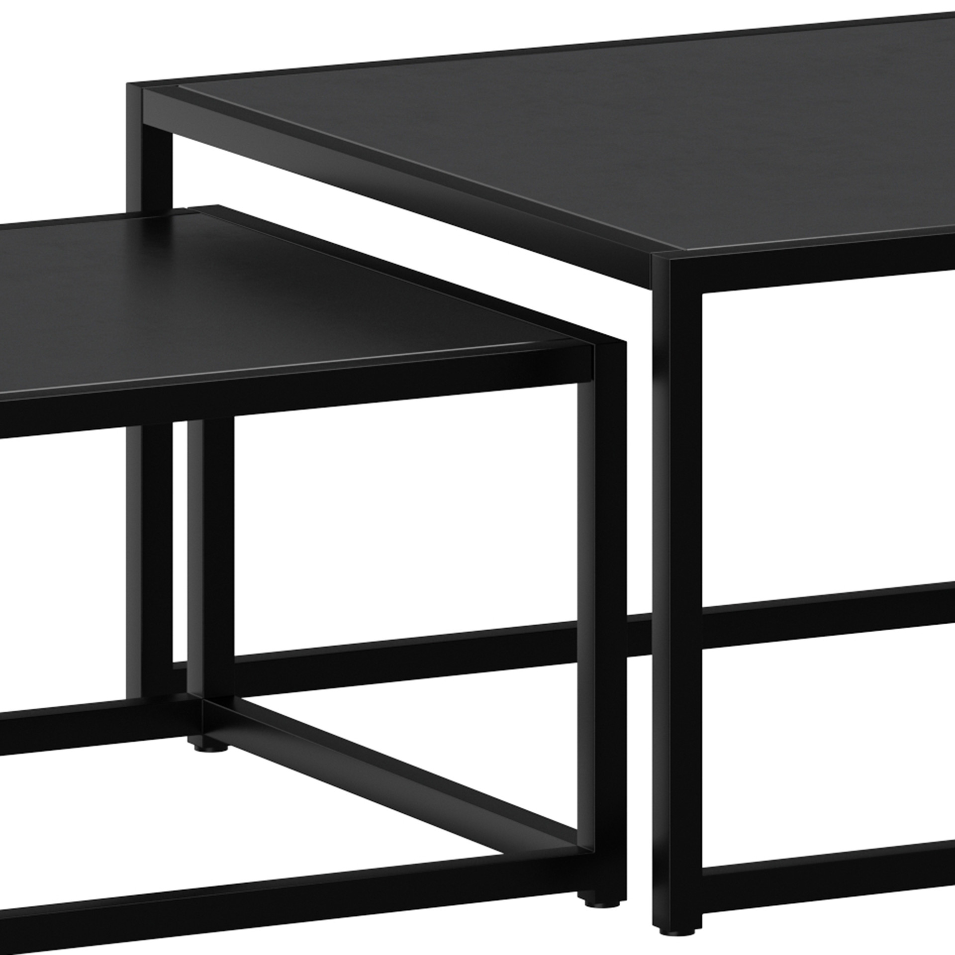 Magnifique ensemble de tables basses contemporaines de 2 pièces. La petite table carrée se range parfaitement sous la grande table carrée - tirez-la pour la transformer en ensemble imbriqué ou déplacez-la facilement pour l'utiliser dans une autre pièce. Le design aux lignes épurées et la finition entièrement noire rehausseront le facteur de design de n'importe quel espace. Idéal pour les espaces de vie formels ou décontractés.