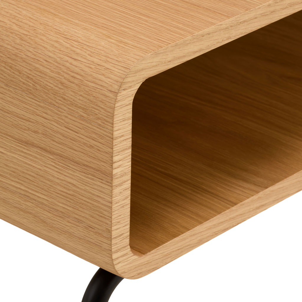 La surface en placage de chêne naturel diffuse une chaleur naturelle et crée une atmosphère accueillante.