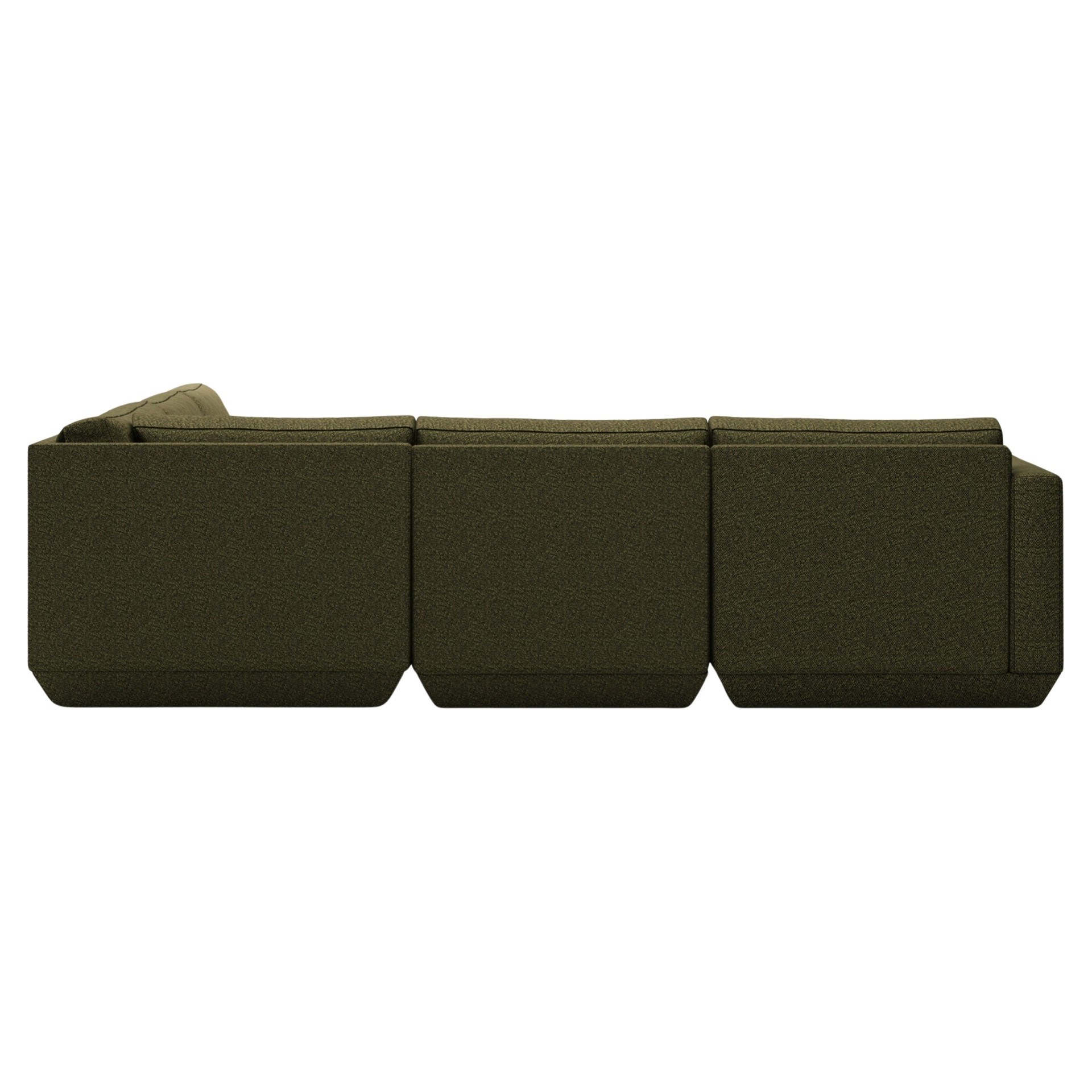 Les composants peuvent ensuite être facilement reconfigurés ou ajoutés ultérieurement pour s'adapter à l'évolution de votre style de vie. Chaque composant présente une silhouette décontractée inspirée du modernisme des années 1970 : une assise basse et profonde créée par des coussins d'assise et de dossier moelleux (rempli de duvet synthétique écologique dérivé de bouteilles d'eau recyclées) et une base attrayante, légèrement inclinée et chanfreinée.