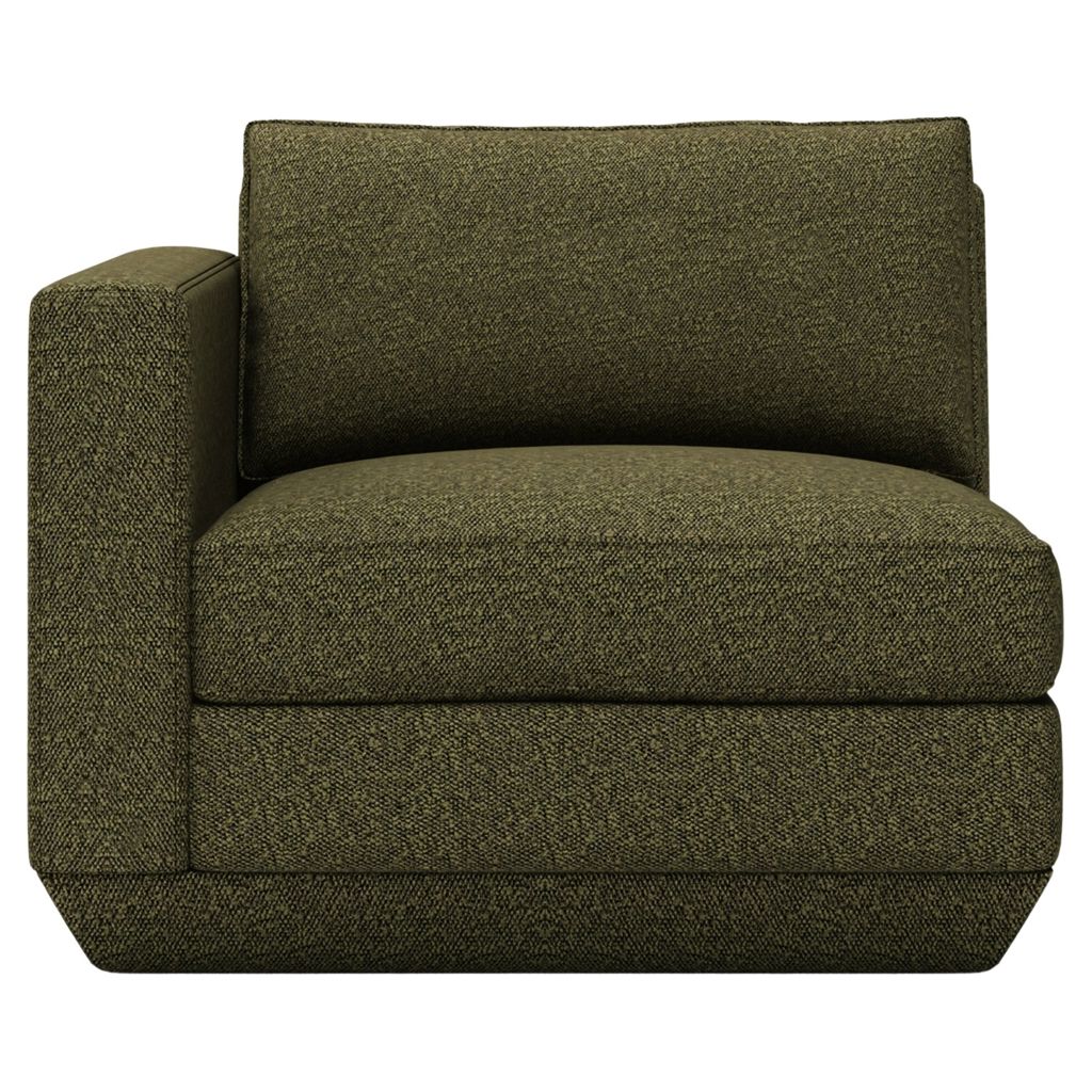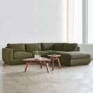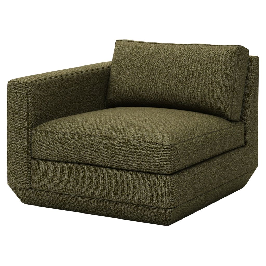 Les composants peuvent ensuite être facilement reconfigurés ou ajoutés ultérieurement pour s'adapter à l'évolution de votre style de vie. Chaque composant présente une silhouette décontractée inspirée du modernisme des années 1970 : une assise basse et profonde créée par des coussins d'assise et de dossier moelleux (rempli de duvet synthétique écologique dérivé de bouteilles d'eau recyclées) et une base attrayante, légèrement inclinée et chanfreinée.