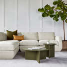 Les composants peuvent ensuite être facilement reconfigurés ou ajoutés ultérieurement pour s'adapter à l'évolution de votre style de vie. Chaque composant présente une silhouette décontractée inspirée du modernisme des années 1970 : une assise basse et profonde créée par des coussins de siège et de dossier moelleux, et une base attrayante, subtilement inclinée et chanfreinée.
