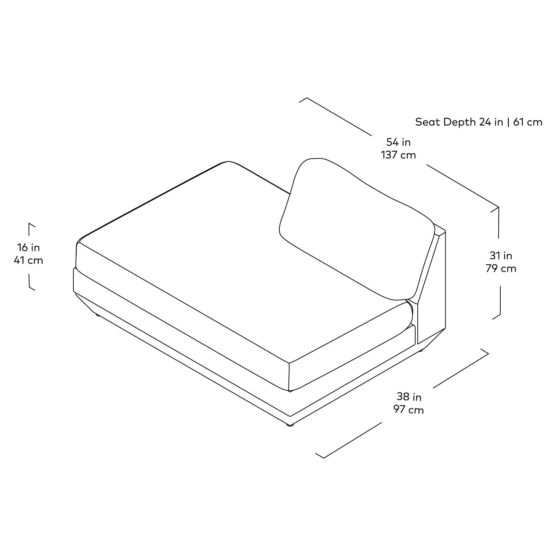 • Type de siège : Récamier avec dossier à droite