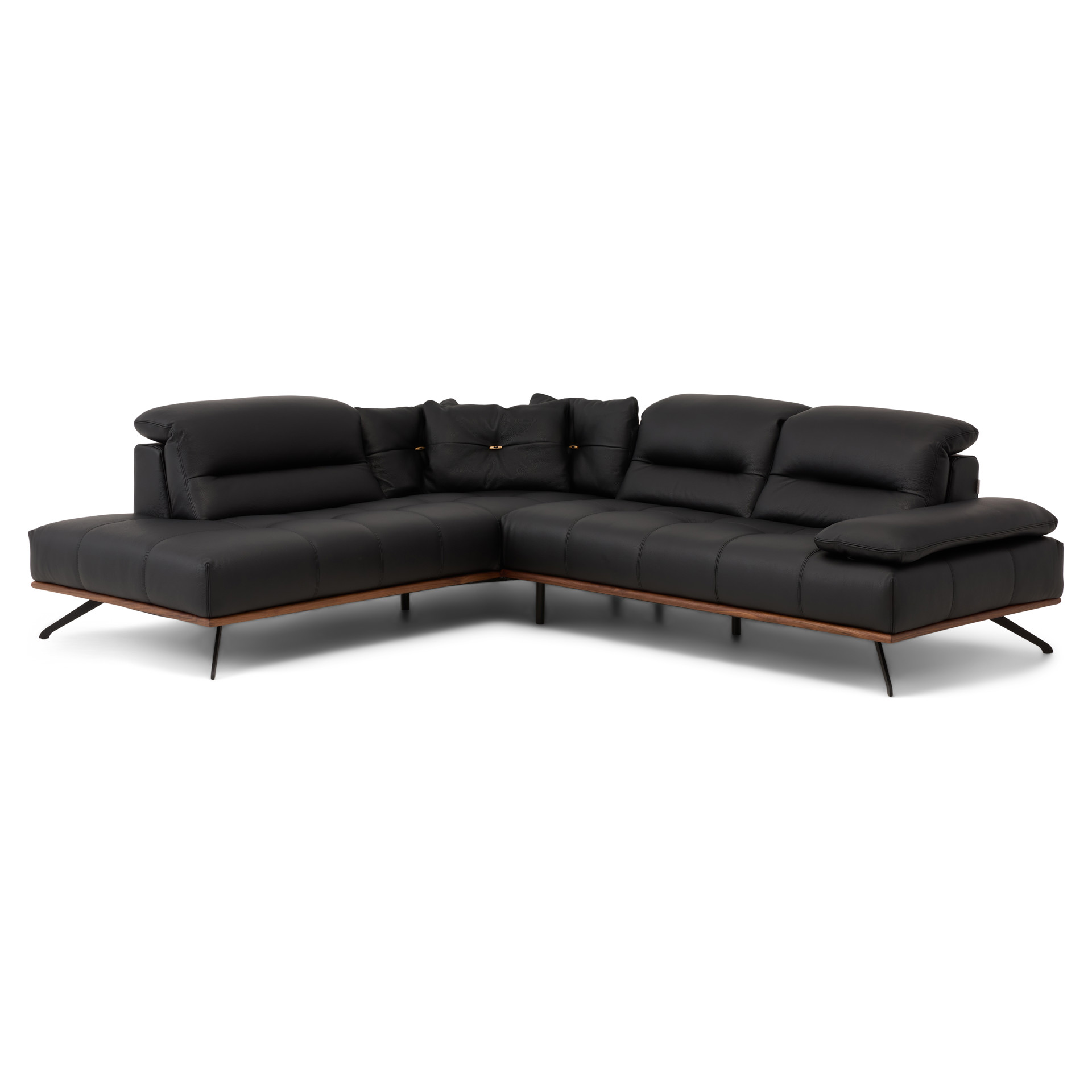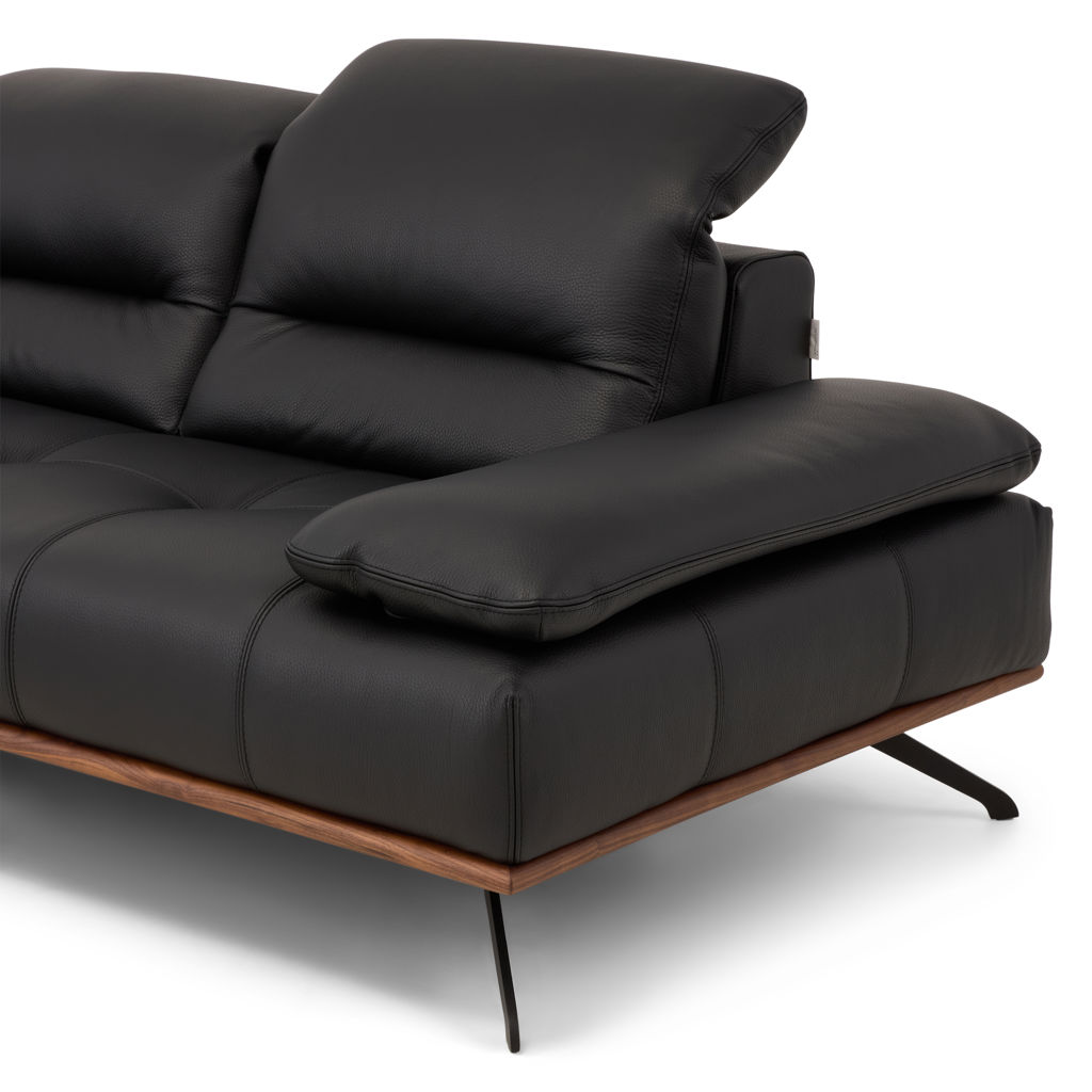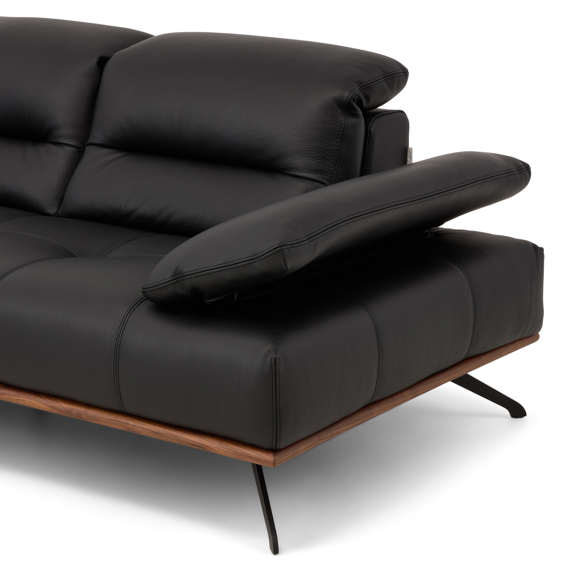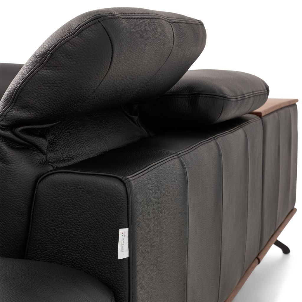 Sectionnel en cuir Astra avec base en noyer et appuis-tête ajustables