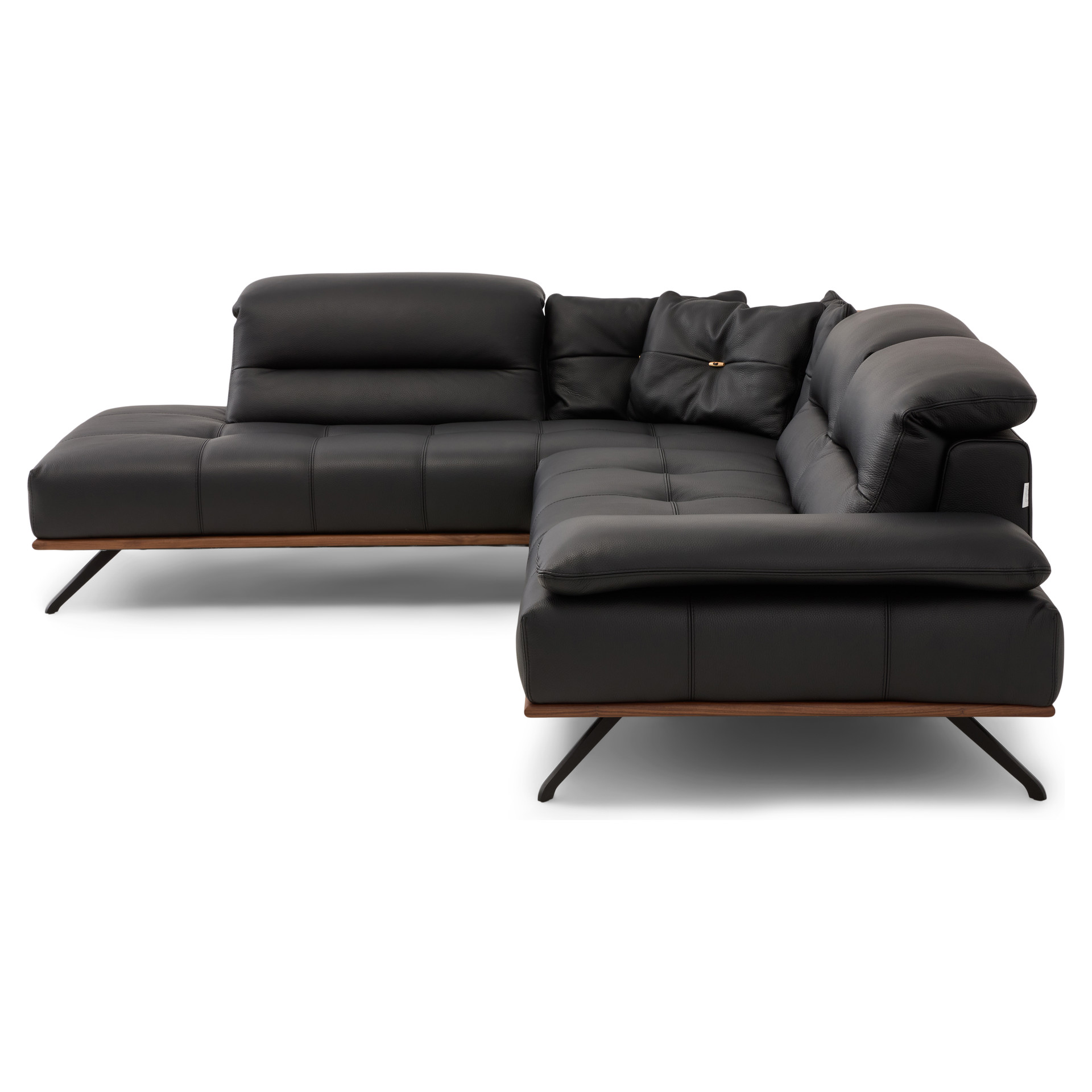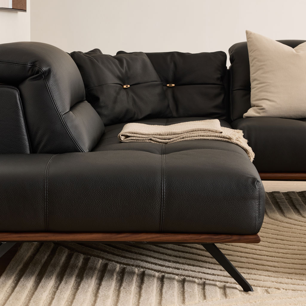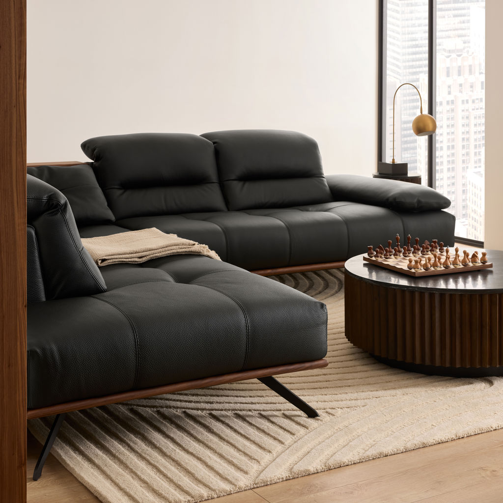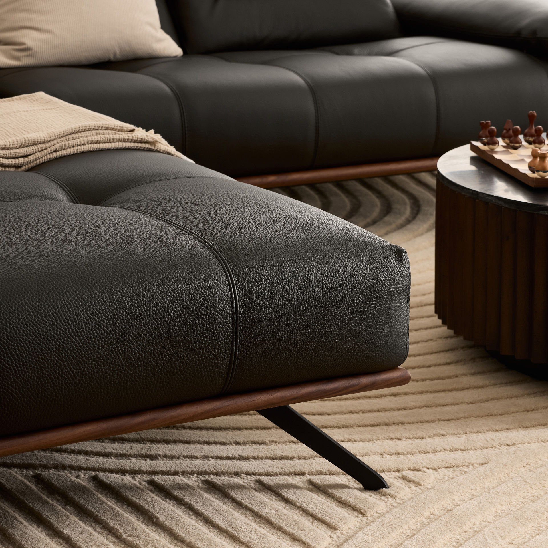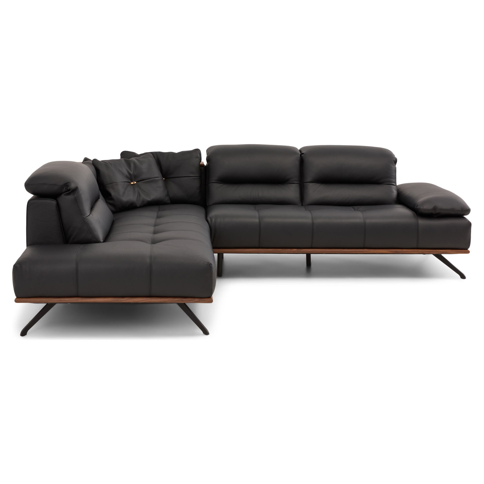 Sectionnel en cuir Astra avec base en noyer et appuis-tête ajustables
