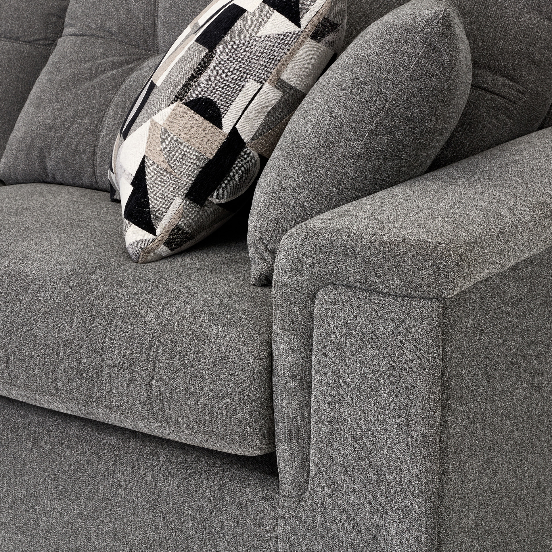 Le revêtement textile doux au toucher résiste à l'usure quotidienne, tandis que les coussins moelleux promettent des heures de détente absolue. Les coussins décoratifs aux motifs géométriques apportent une touche d'élégance contemporaine qui s'harmonise avec tous les décors.