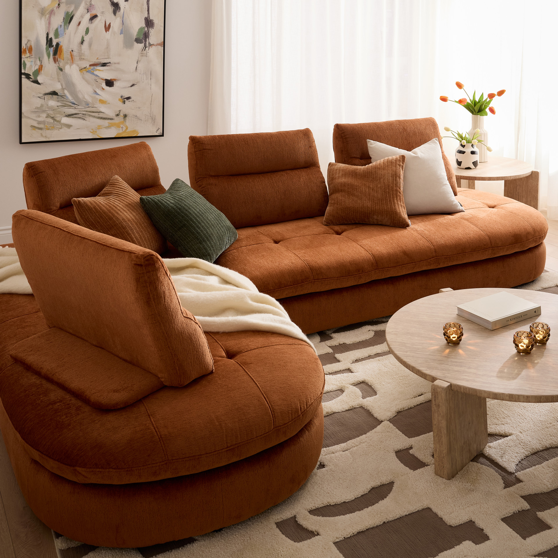 Offrez-vous un confort enveloppant avec ce sectionnel au design généreux et aux lignes arrondies.