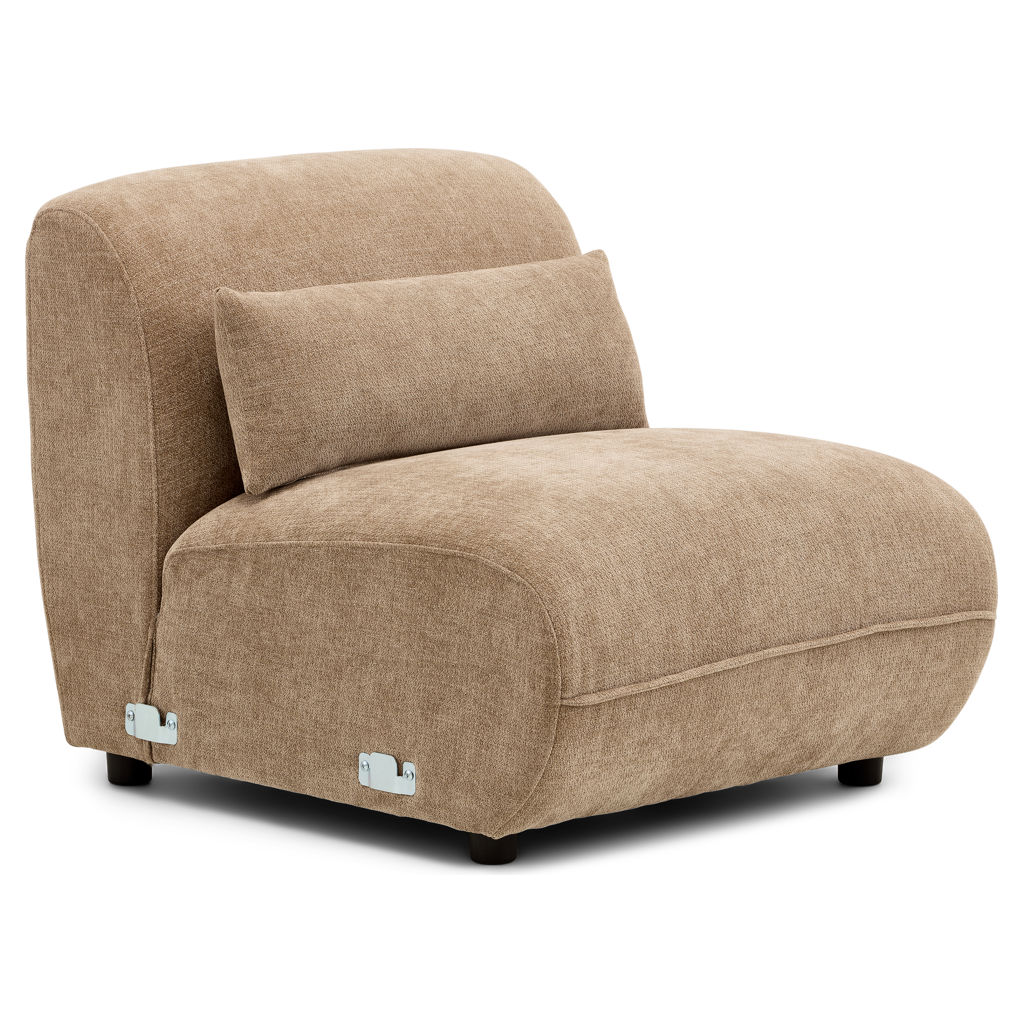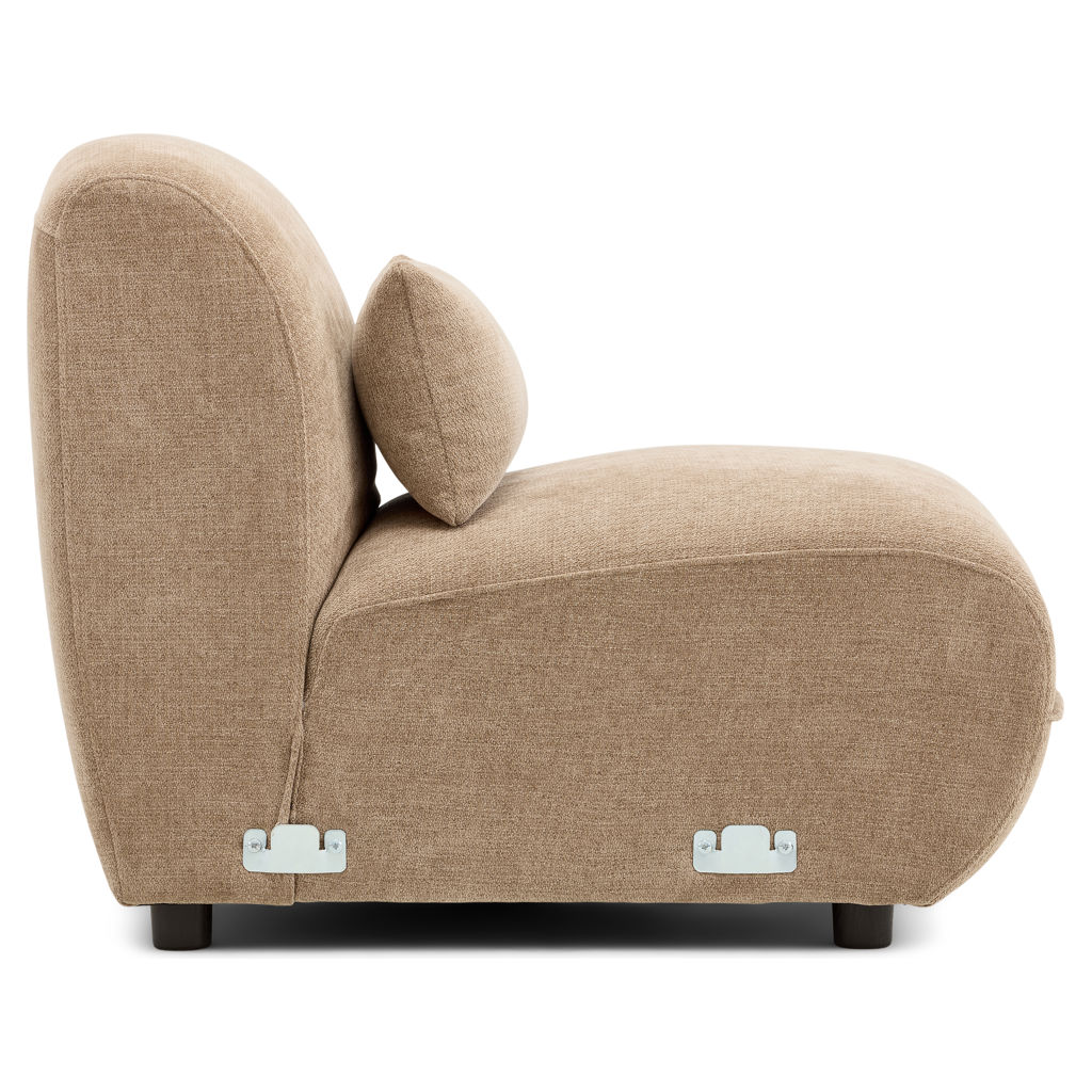 Sa silhouette minimaliste sans accoudoirs et son revêtement en tissu texturé dans des tons neutres en font une pièce polyvalente qui s'adapte à tous les espaces. Le dossier ergonomique et l'assise généreusement rembourrée offrent un soutien optimal, tandis que son coussin lombaire amovible permet de personnaliser votre confort.