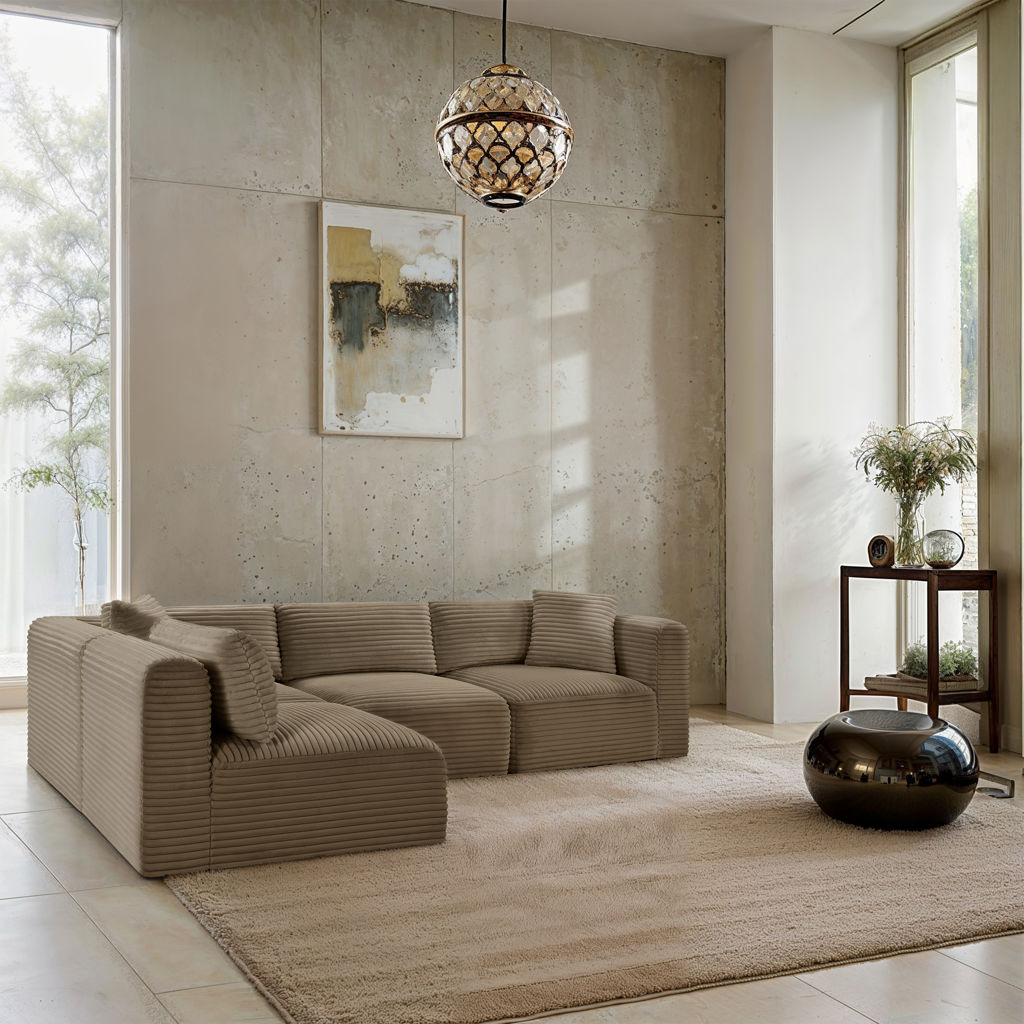 Sectionnel modulaire en velours côtelé Shaggy 4 pièces