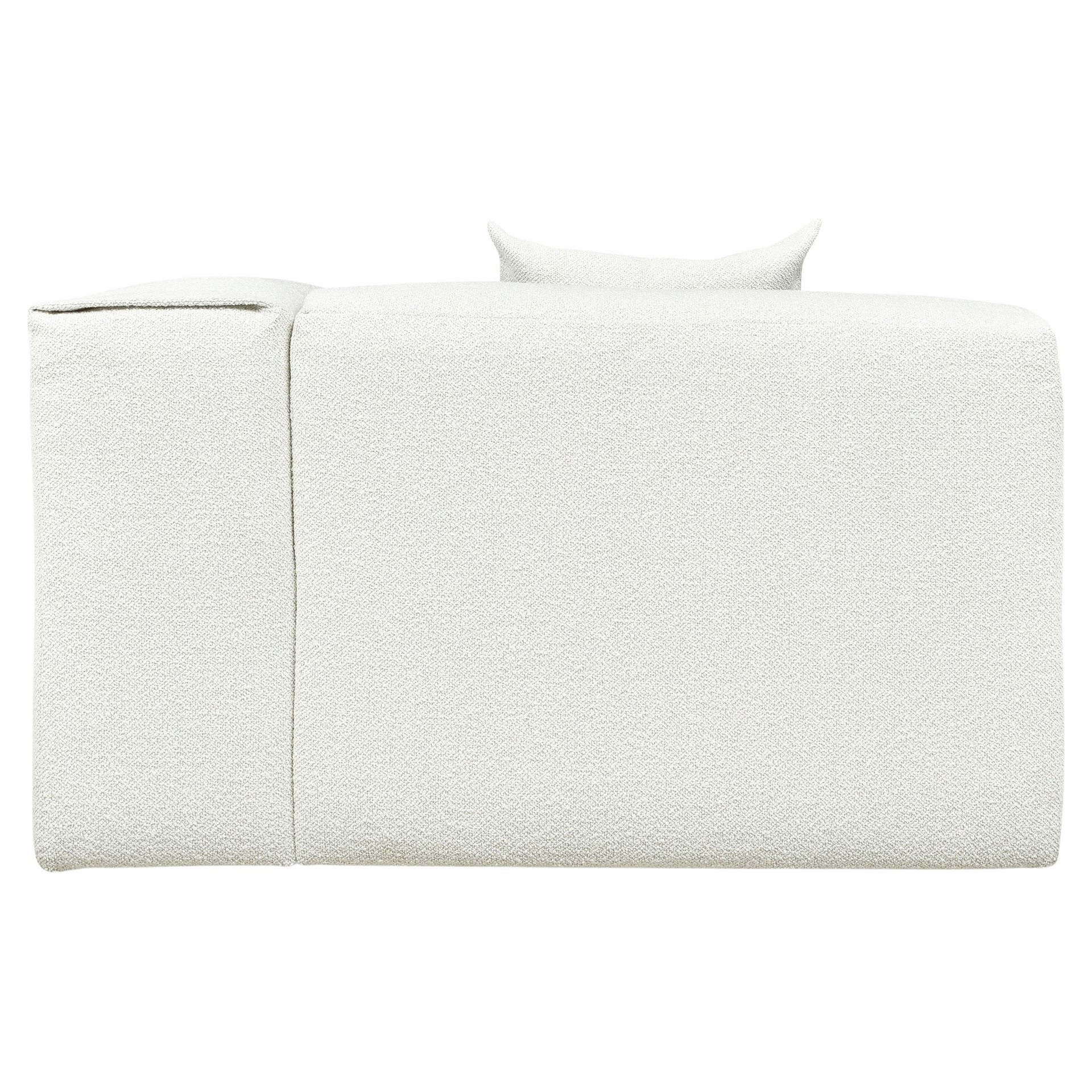 Chaque pièce présente un profil bas et dodu (grâce à un rembourrage en plumes de qualité supérieure) recouvert d'un tissu bouclé nubby, avec une forme moderne d'inspiration scandinave qui est suffisamment polyvalente pour tenir la cour dans une maison de plage, une escapade en montagne ou le hall d'un hôtel-boutique.