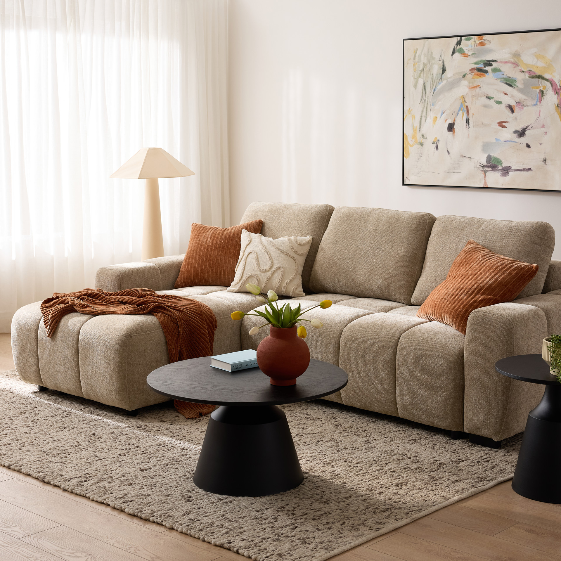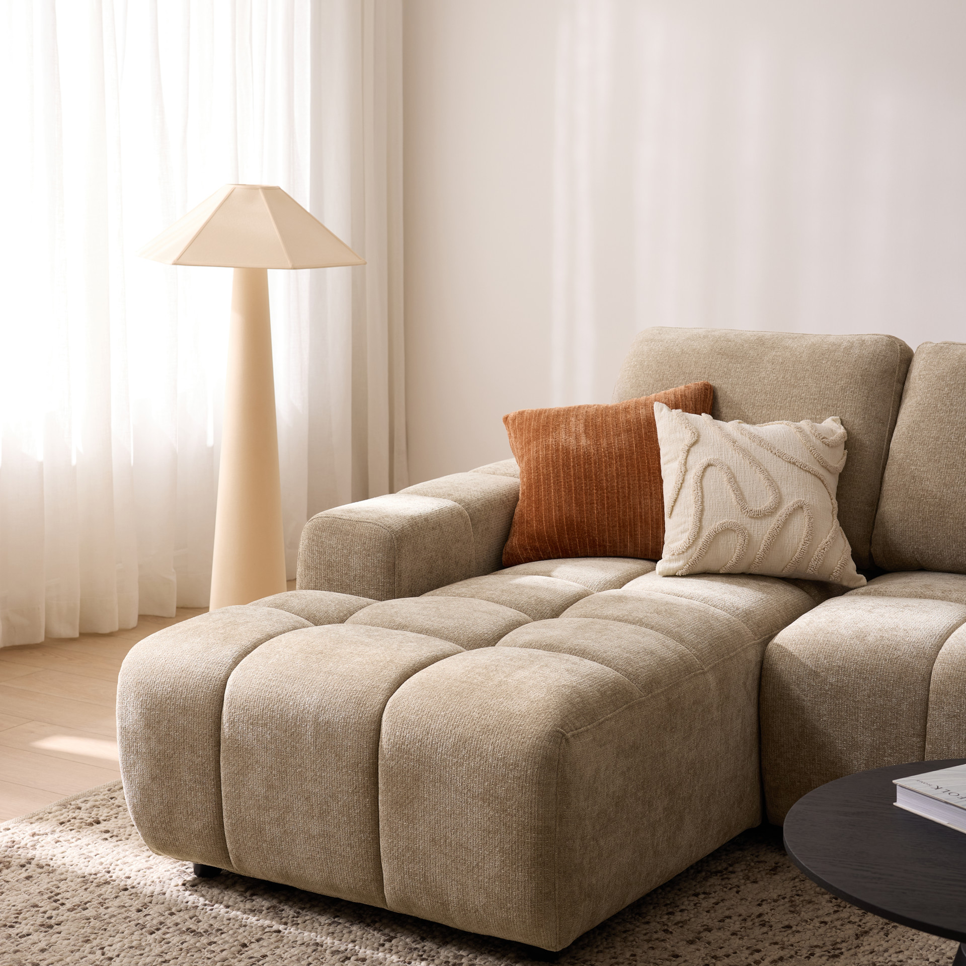 Le canapé sectionnel Mia séduit par son design moderne et ses proportions généreuses.