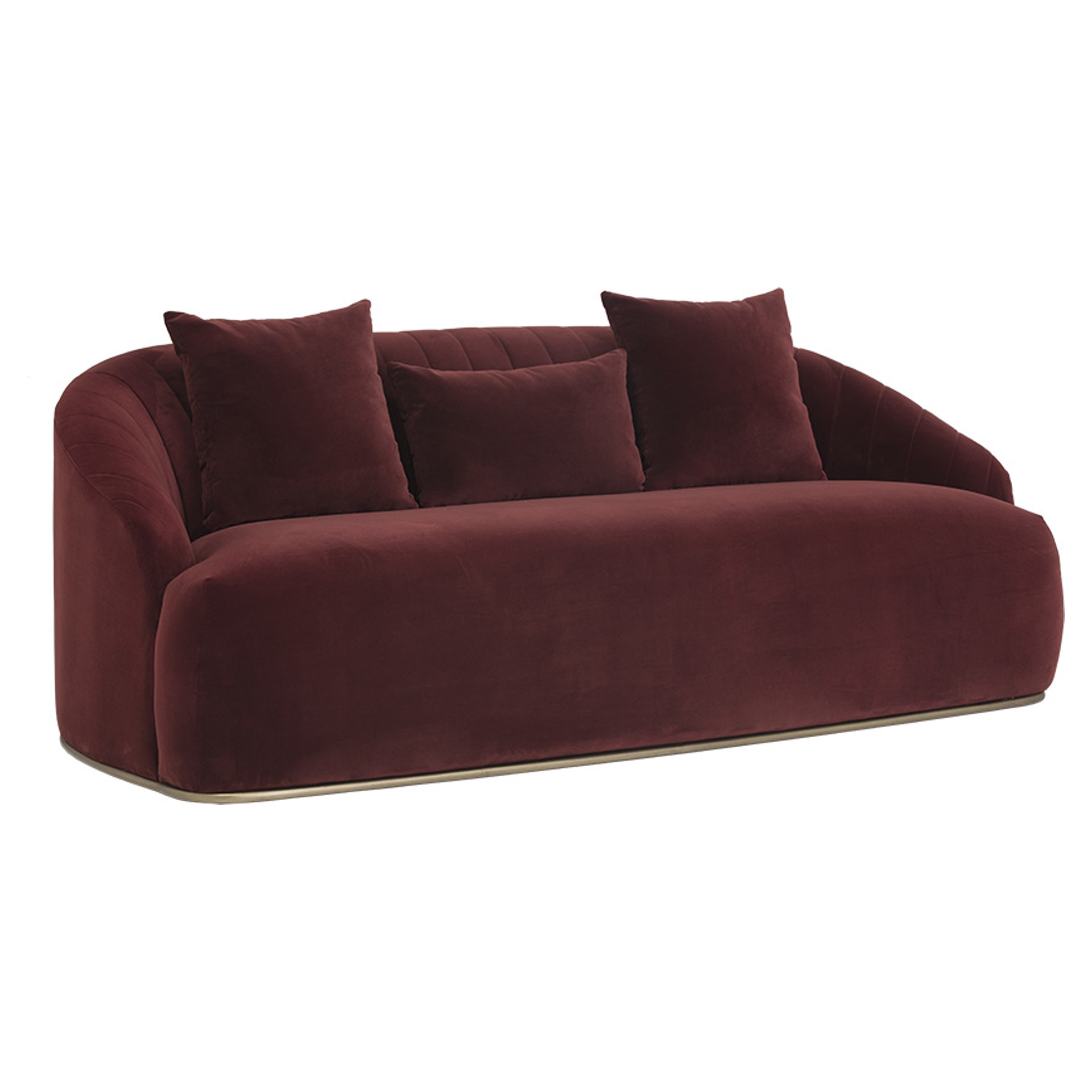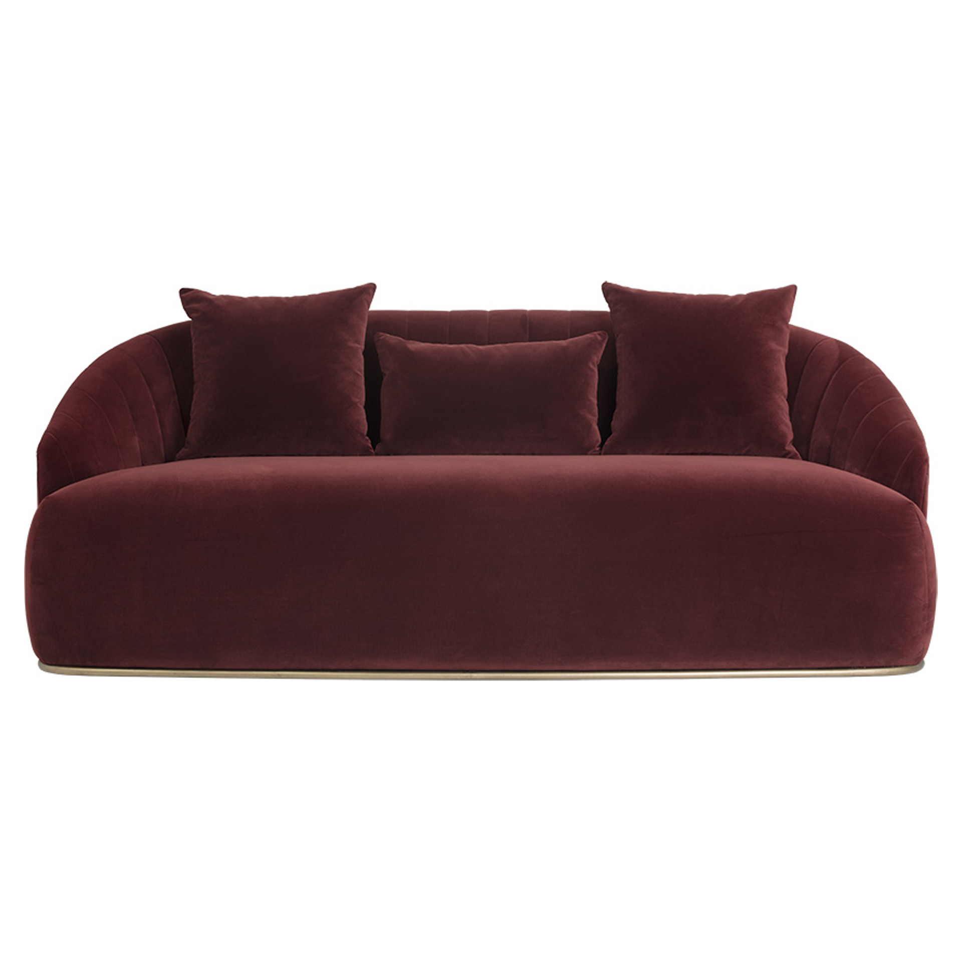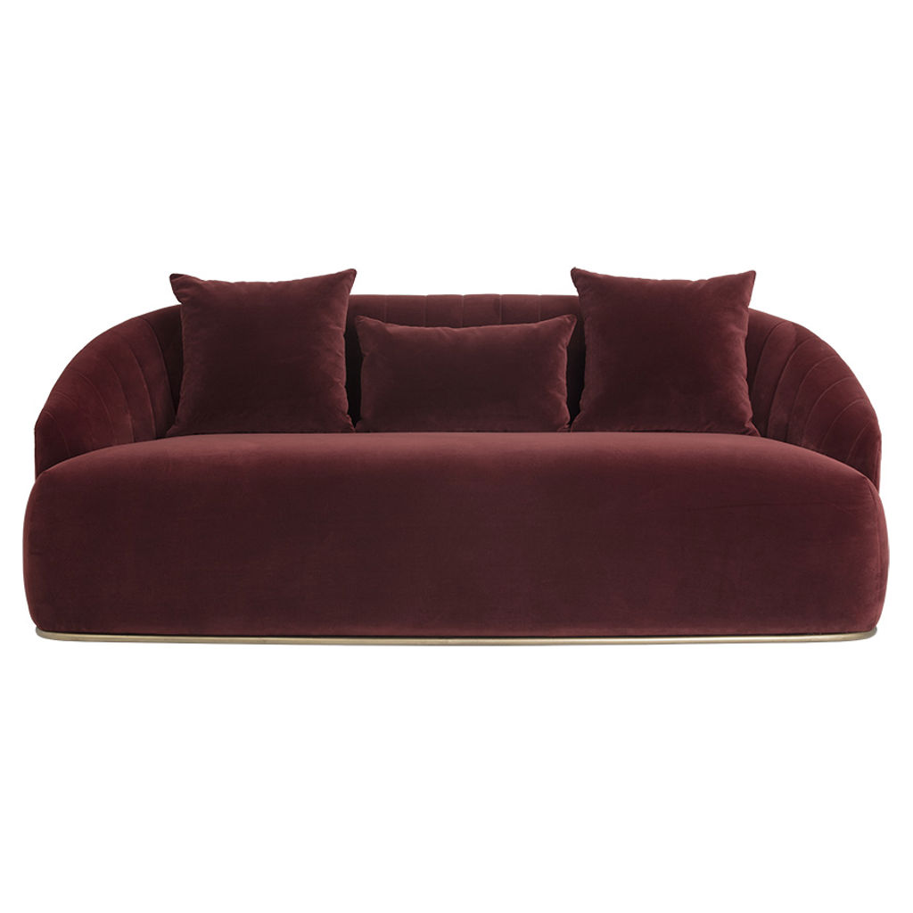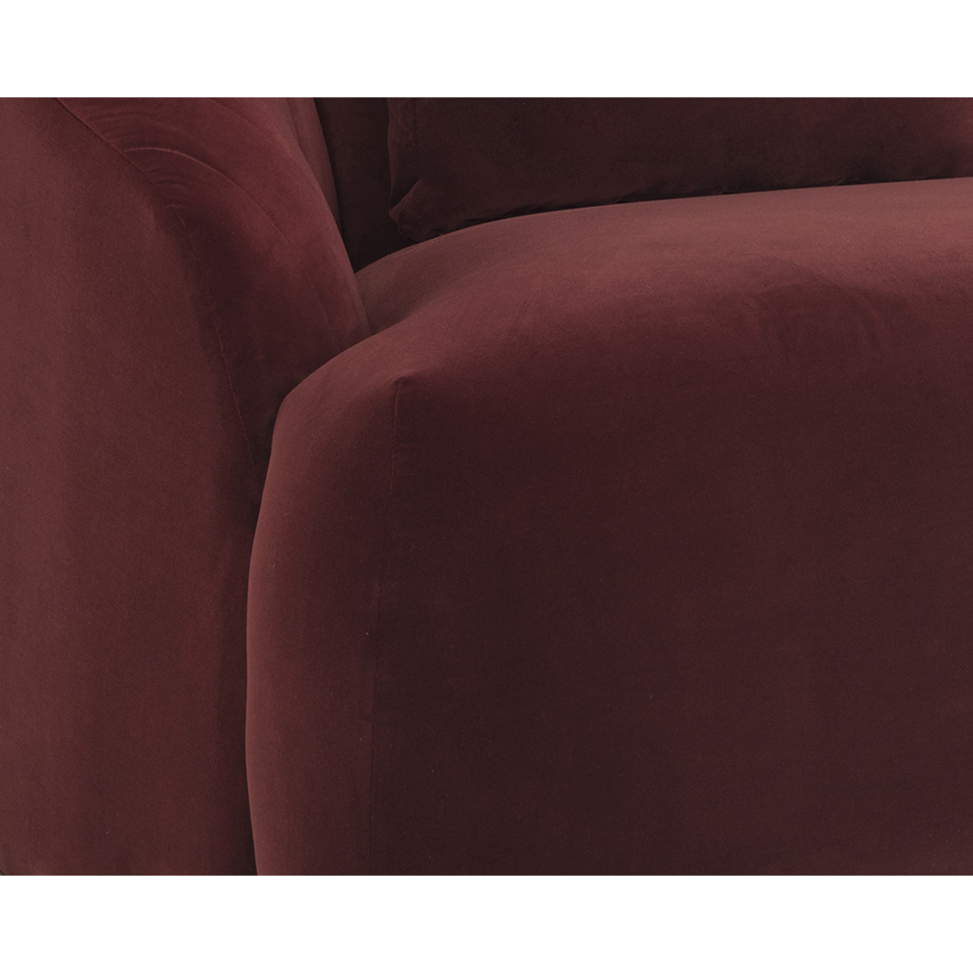 Ce sofa Astrid transformera votre salon en un véritable cocon de douceur. Son revêtement en velours bordeaux profond apporte une élégance raffinée qui s'harmonise parfaitement avec tous les styles de décoration.