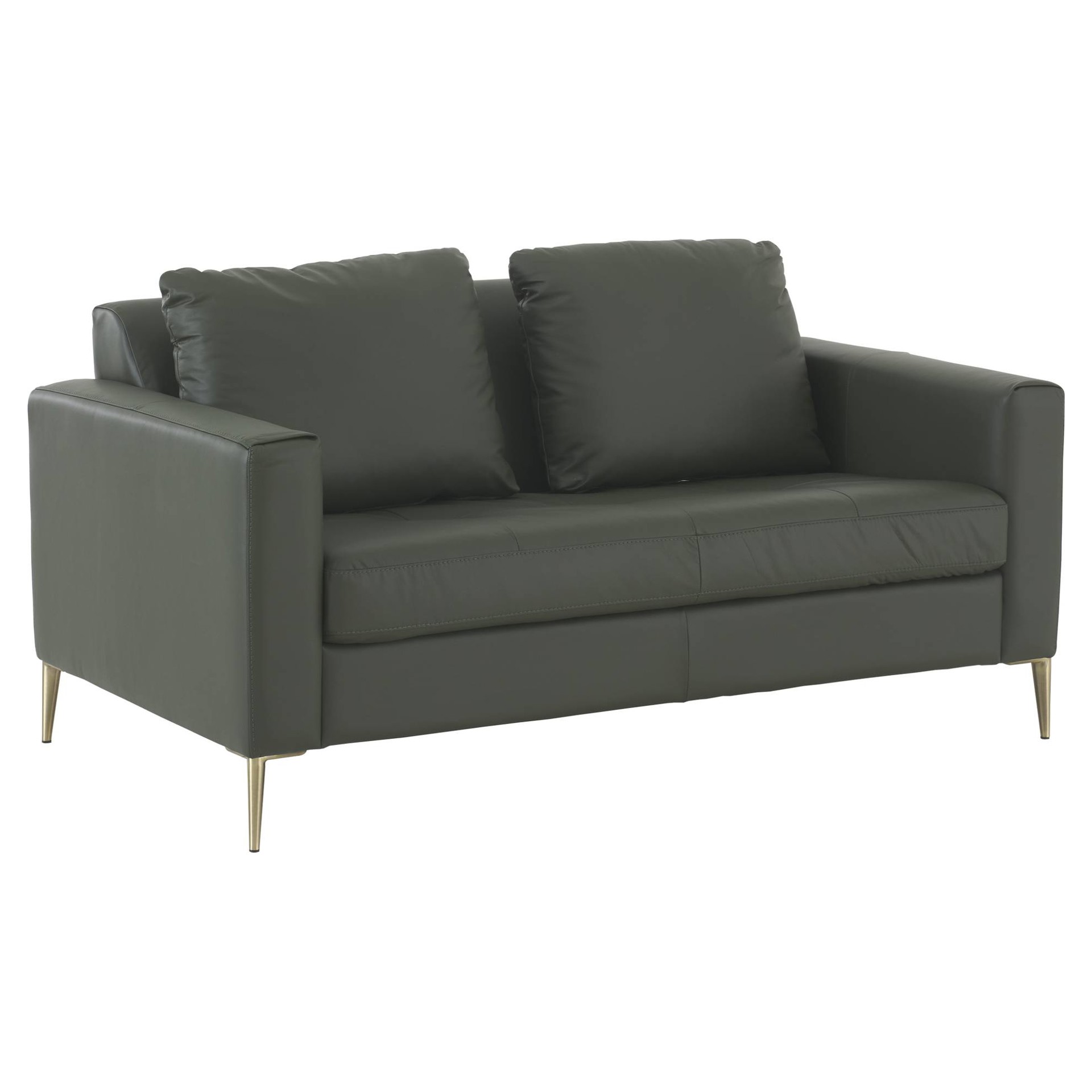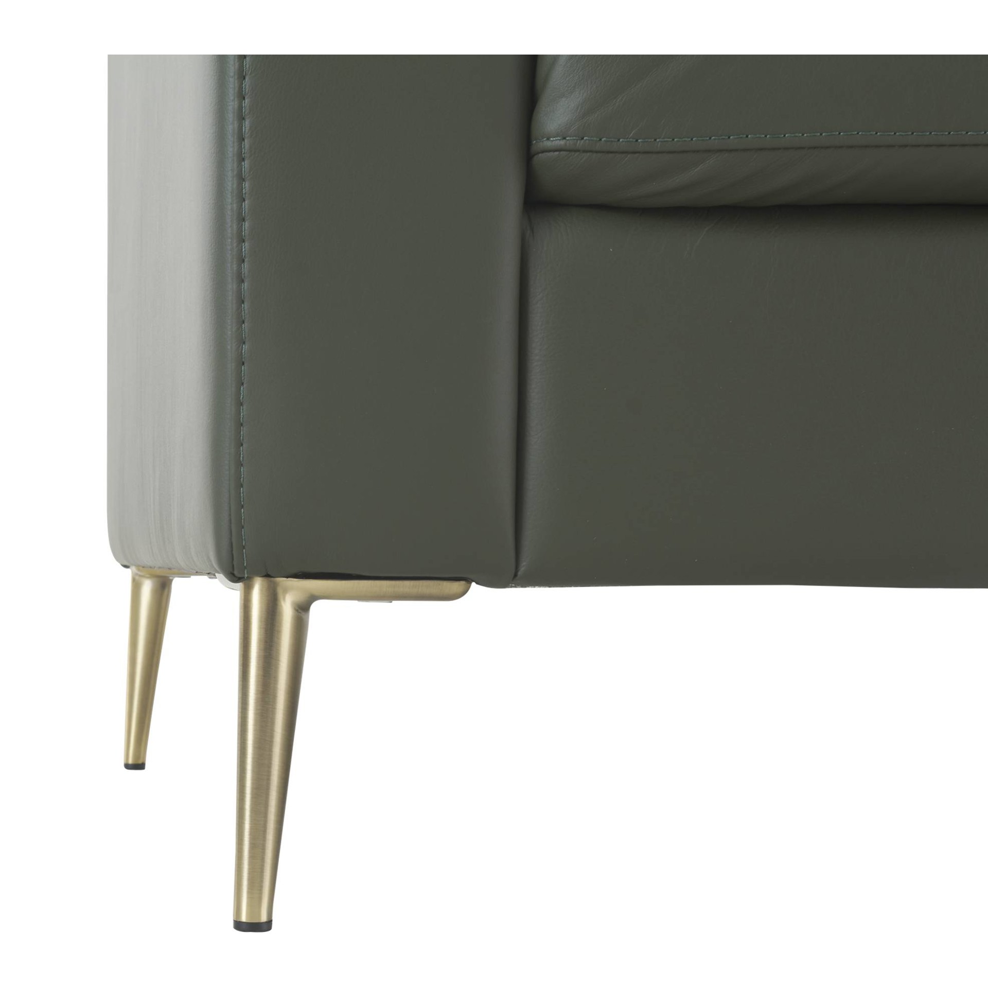 Ce qui fait sa force ? Un cuir véritable de qualité sur l'assise et le dossier pour un confort d'exception au quotidien, complété par une structure en cuir synthétique qui allie durabilité et facilité d'entretien. Ses pieds métalliques dorés apportent une touche raffinée qui ne passe pas inaperçue.