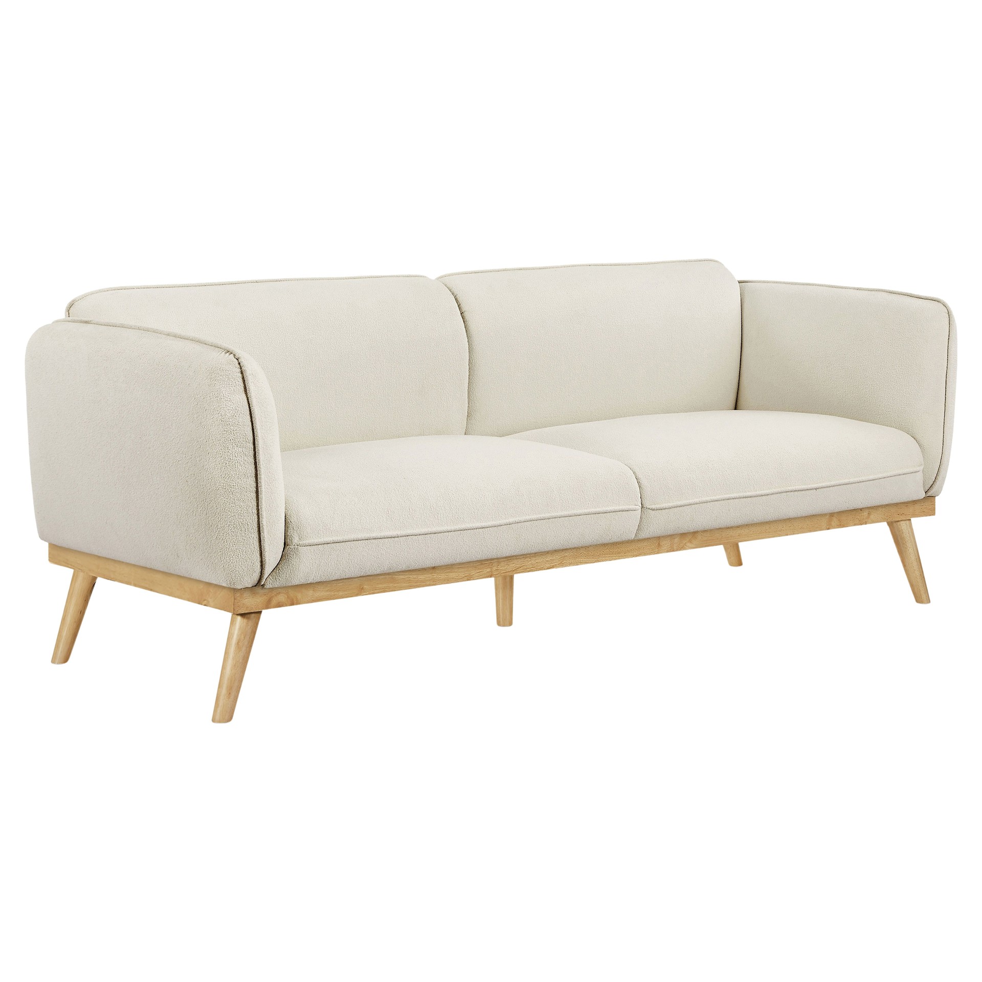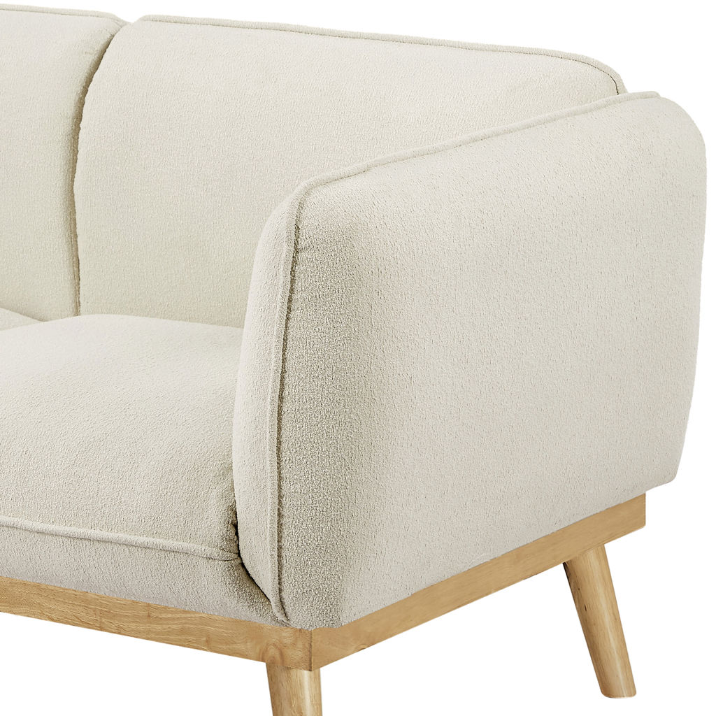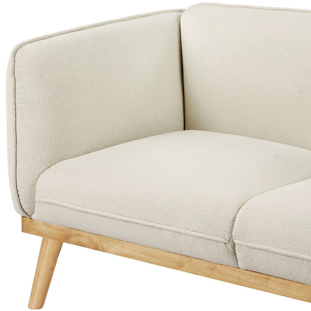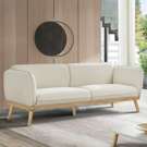 Ce magnifique sofa allie harmonieusement le confort moderne et l'esthétique scandinave. Son revêtement en tissu beige crème apporte une douceur chaleureuse à votre salon, tandis que sa structure en bois naturel aux lignes épurées s'intègre parfaitement dans tous les décors.