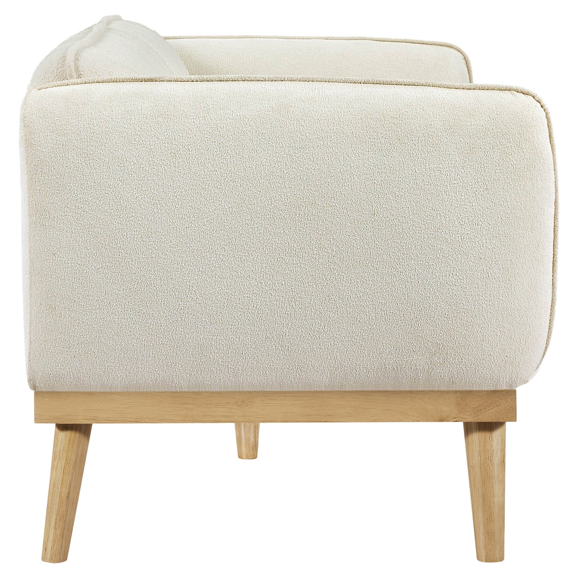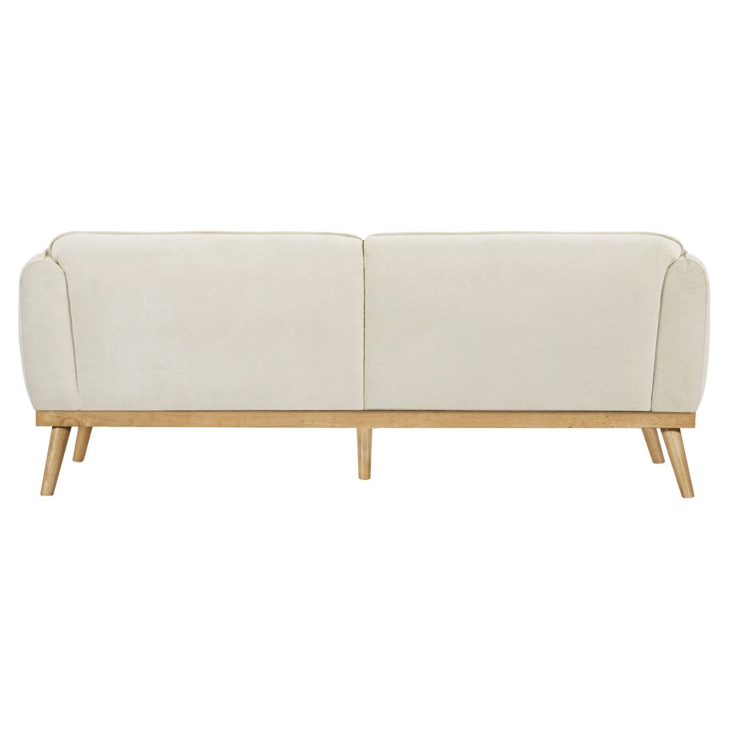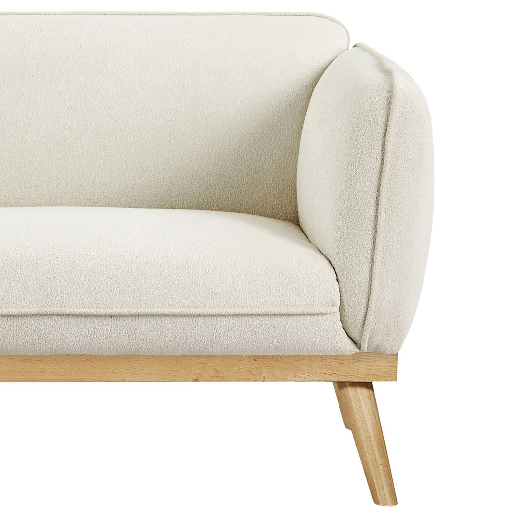 Ce magnifique sofa allie harmonieusement le confort moderne et l'esthétique scandinave. Son revêtement en tissu beige crème apporte une douceur chaleureuse à votre salon, tandis que sa structure en bois naturel aux lignes épurées s'intègre parfaitement dans tous les décors.