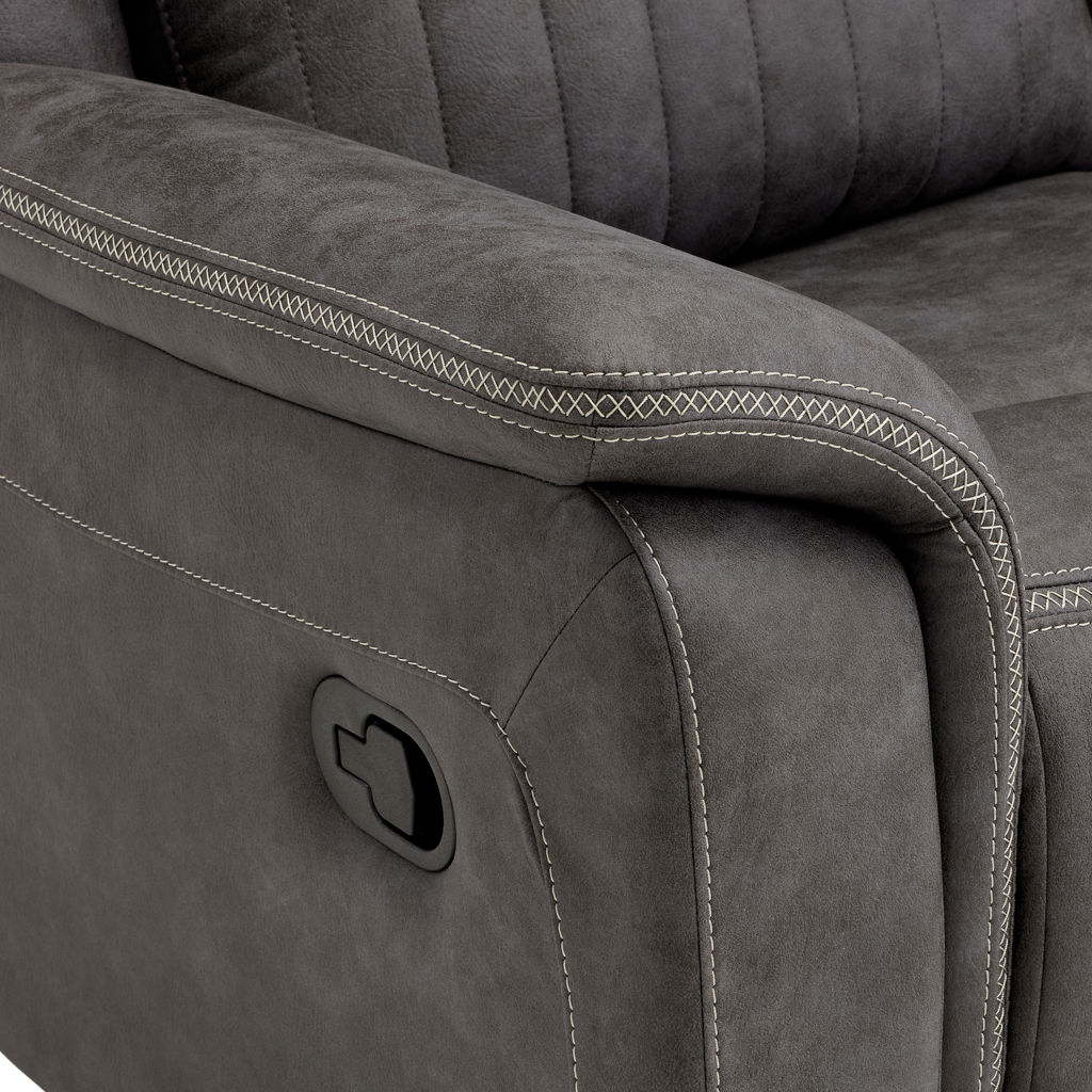 Transformez votre salon en véritable havre de détente avec cette causeuse inclinable au design raffiné. Son revêtement en tissu gris anthracite aux surpiqûres contrastantes apporte une touche contemporaine à votre intérieur, tandis que sa finition matelassée évoque le luxe et la qualité.