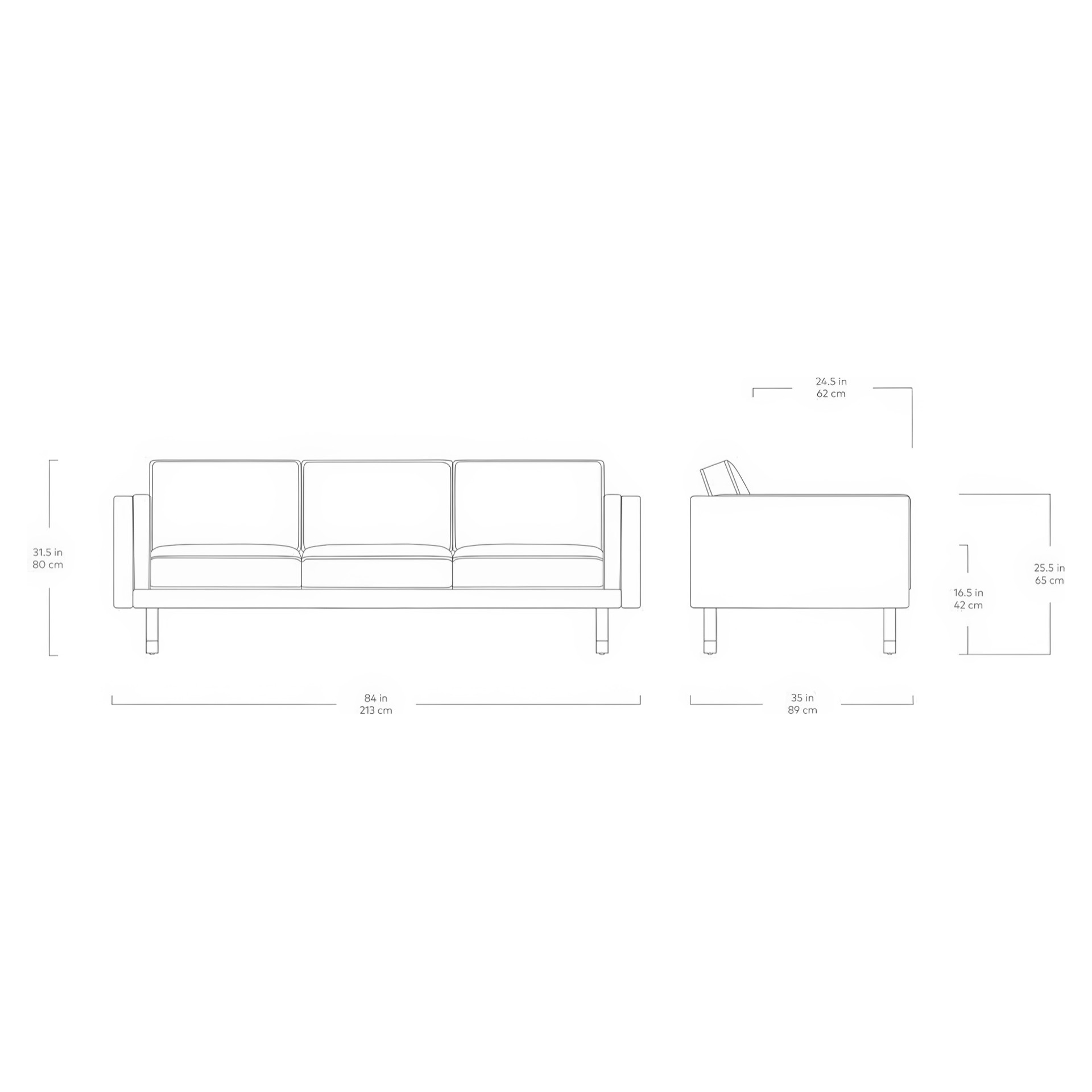 Les coussins structurés, avec des coutures françaises, assurent le confort et renforcent le style généalogique. Les pieds en bois massif comprennent des détails en métal pour ajouter une sophistication discrète au design.