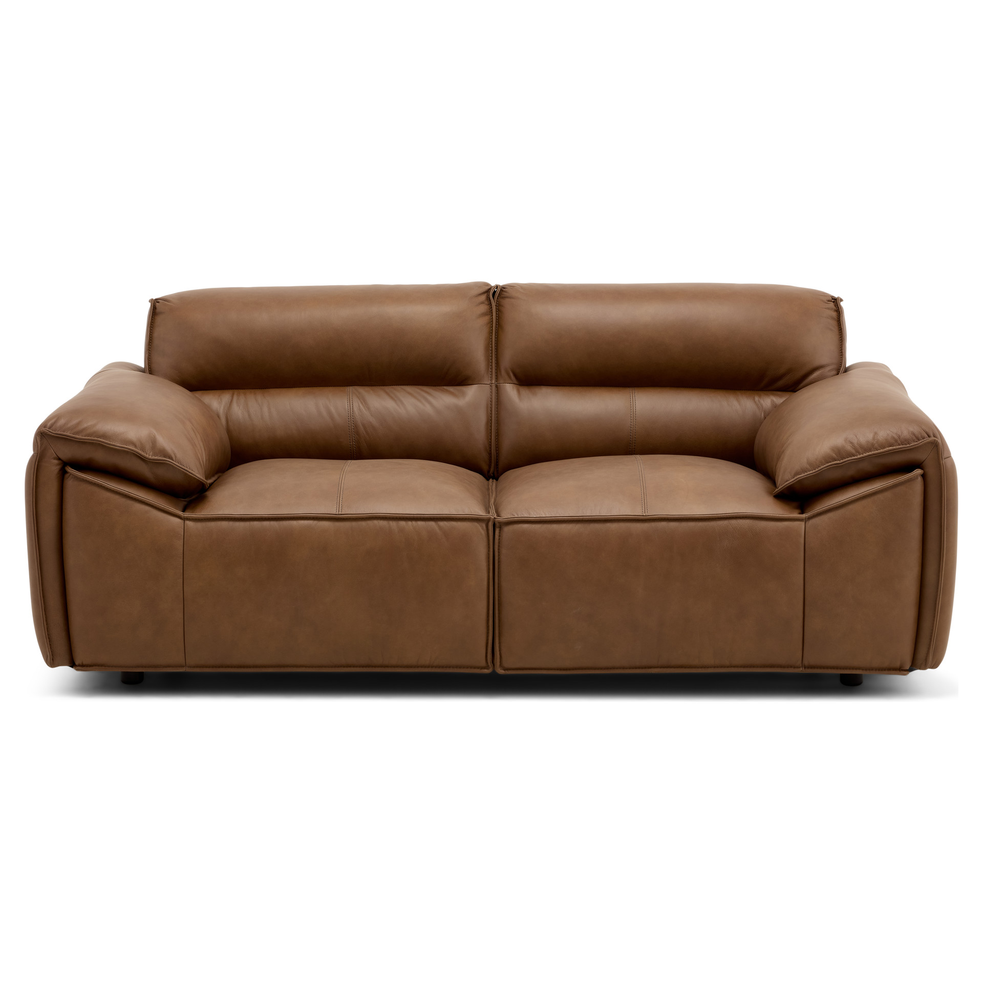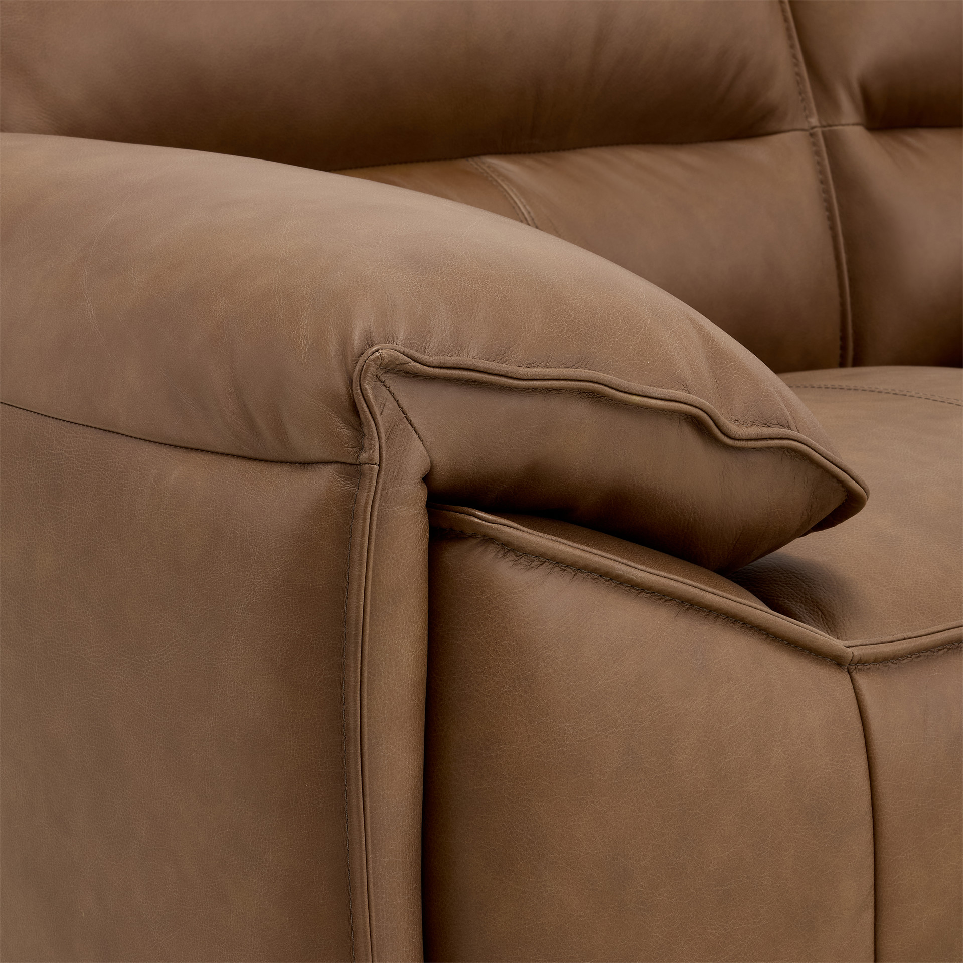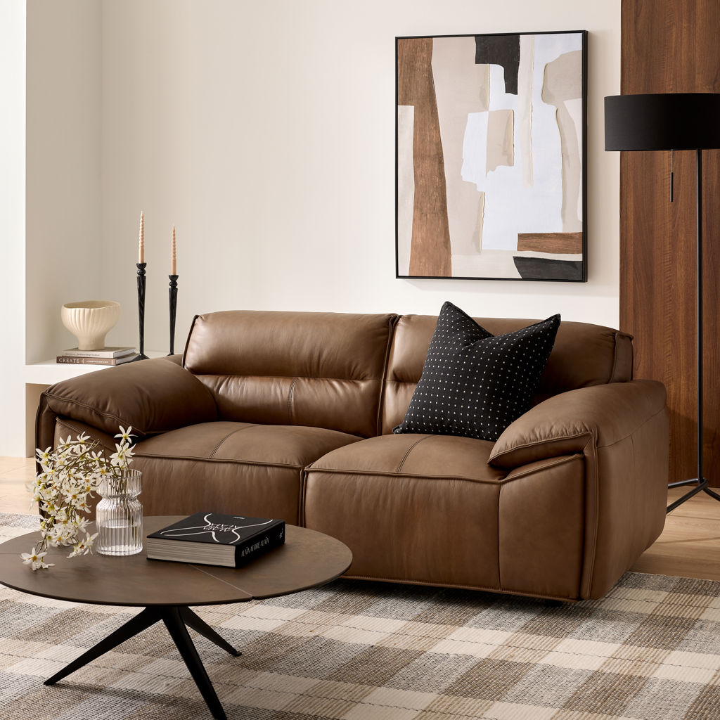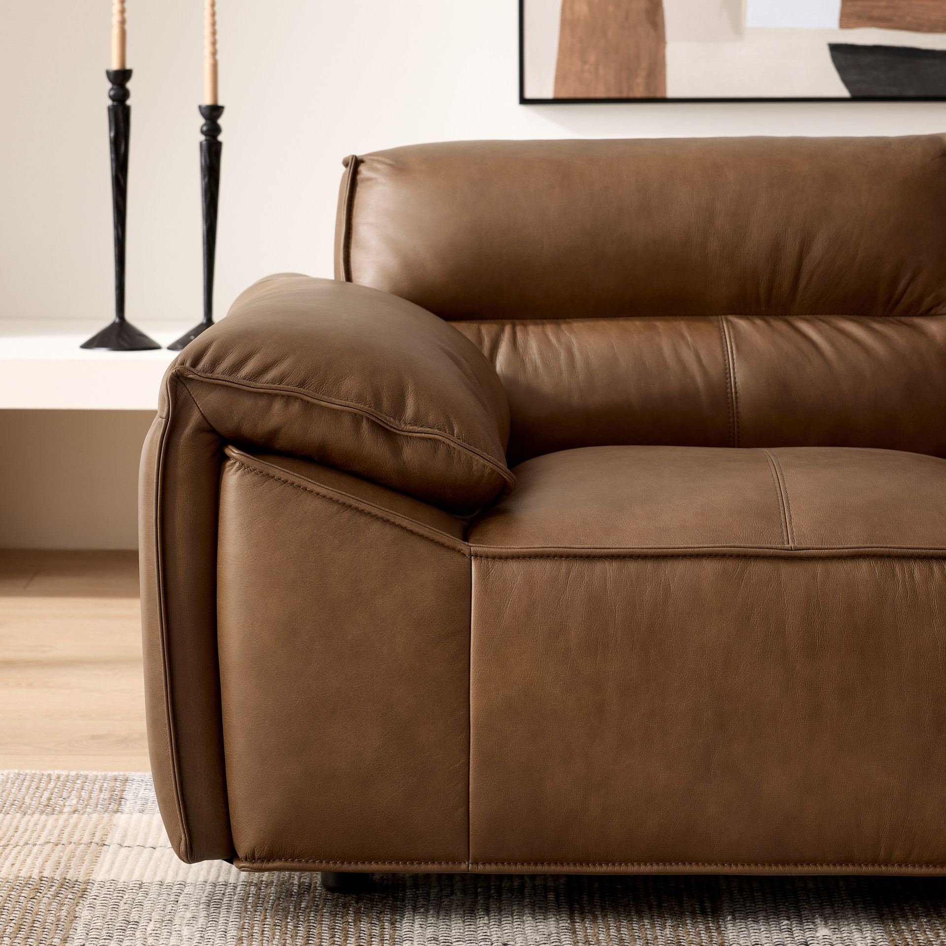 Ses accoudoirs uniques en forme de coussin plié sont une nouvelle tendance, associés à un revêtement en cuir semi-aniline super doux et luxueux.