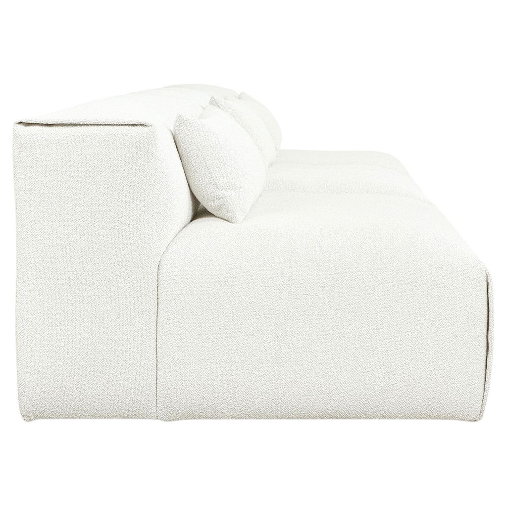 Chaque pièce présente un profil bas et dodu (grâce à un rembourrage en plumes de qualité supérieure) recouvert d'un tissu bouclé nubby, avec une forme moderne d'inspiration scandinave qui est suffisamment polyvalente pour tenir la cour dans une maison de plage, une escapade en montagne ou le hall d'un hôtel-boutique.