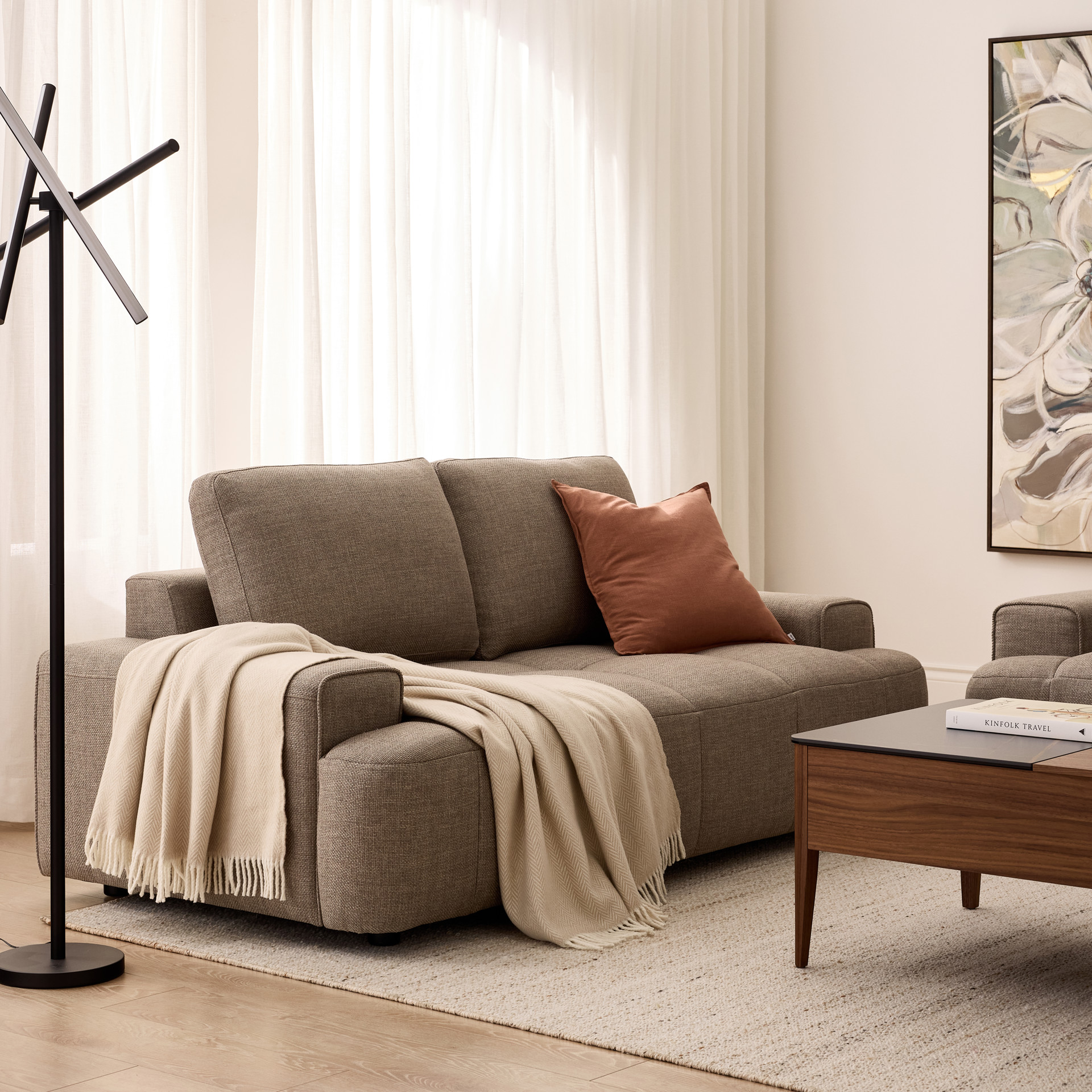 Avec ses assises larges et son dossier généreusement rembourré, cette causeuse offre un excellent soutien et un confort idéal pour les moments de détente, que ce soit pour recevoir des invités, regarder un film ou simplement relaxer. Ses lignes simples et ses accoudoirs bien proportionnés lui confèrent une allure élégante tout en maximisant l’espace d’assise.