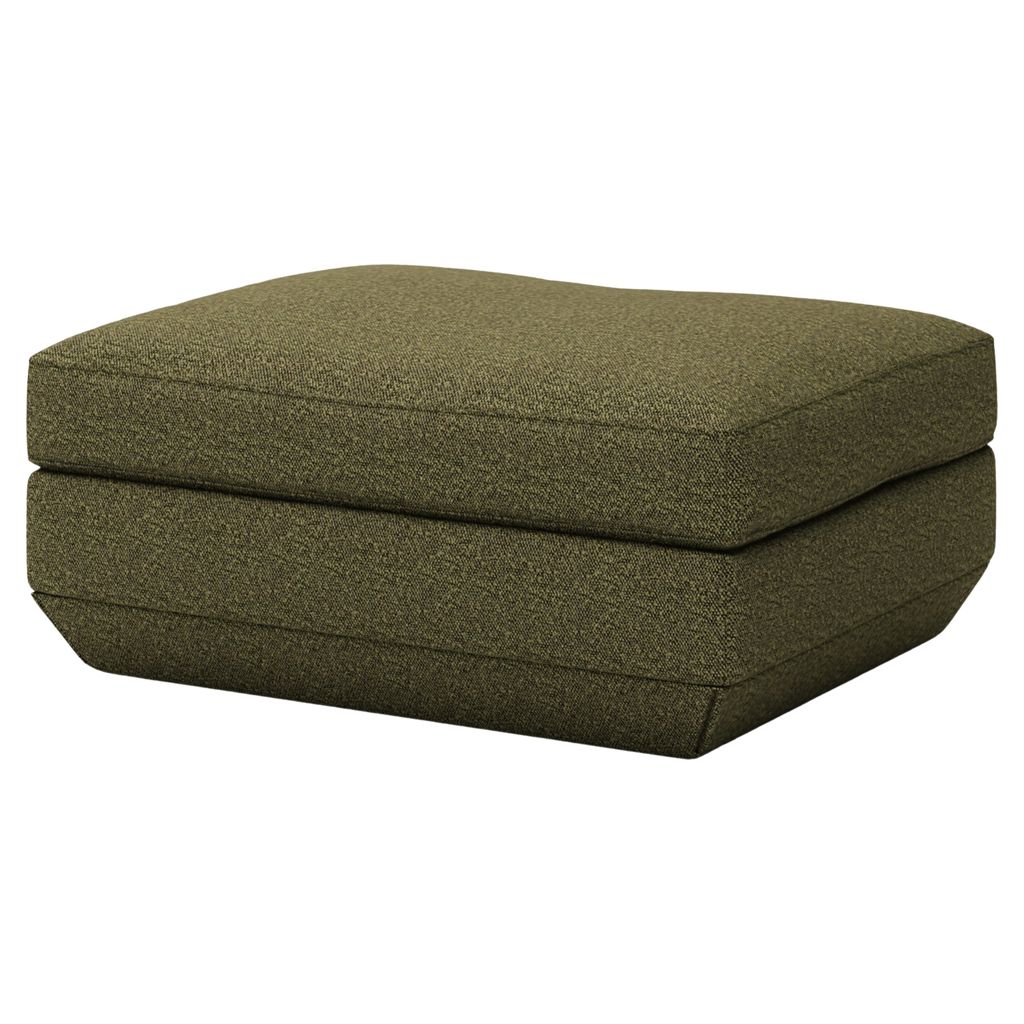 Chaque composant présente une silhouette décontractée inspirée du modernisme des années 1970 : une assise basse et profonde créée par des coussins d'assise et de dossier moelleux (rempli de duvet synthétique écologique dérivé de bouteilles d'eau recyclées) et une base attrayante, légèrement inclinée et chanfreinée.