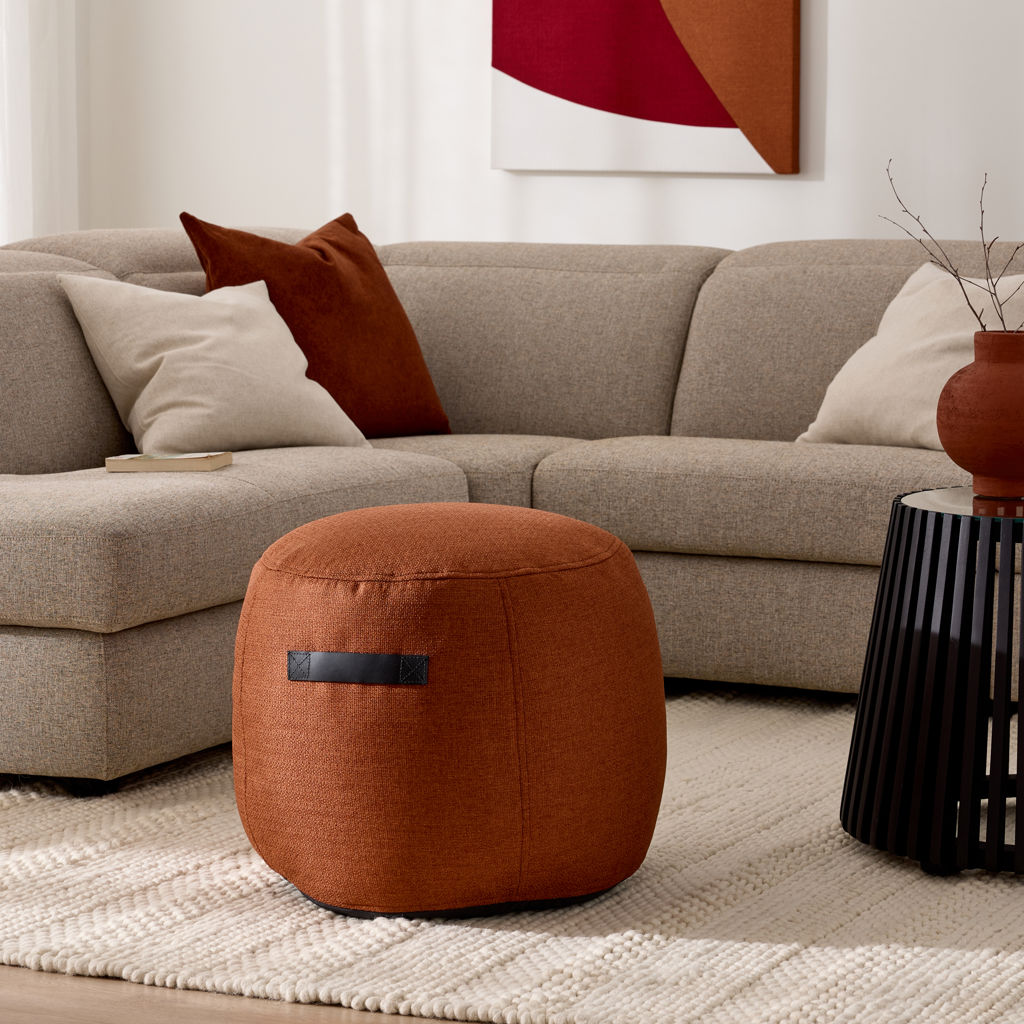 Le pouf BILLY rond est confectionné dans un tissu d'ameublement de qualité supérieure. Il est orné de 2 ganses en cuir noir. Le rembourrage fait de billes de polystyrène donne le parfait mix tendance pour un meuble d'appoint chic et décontracté.