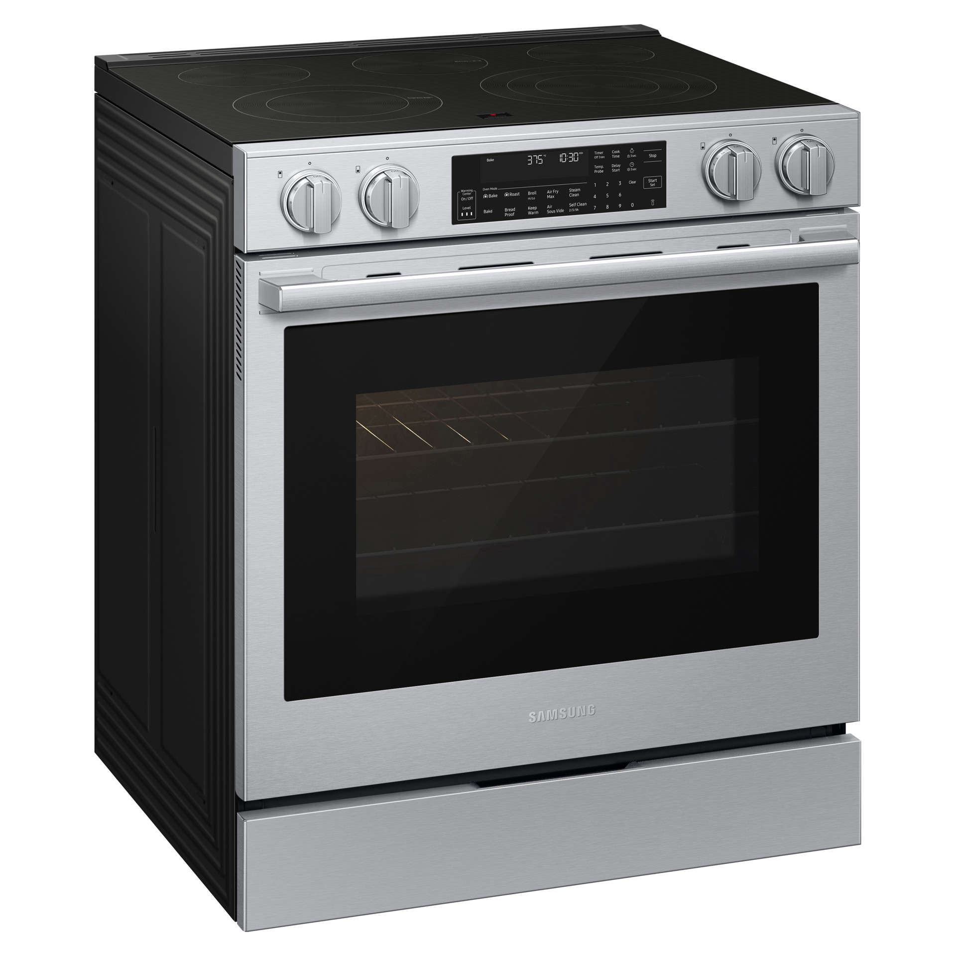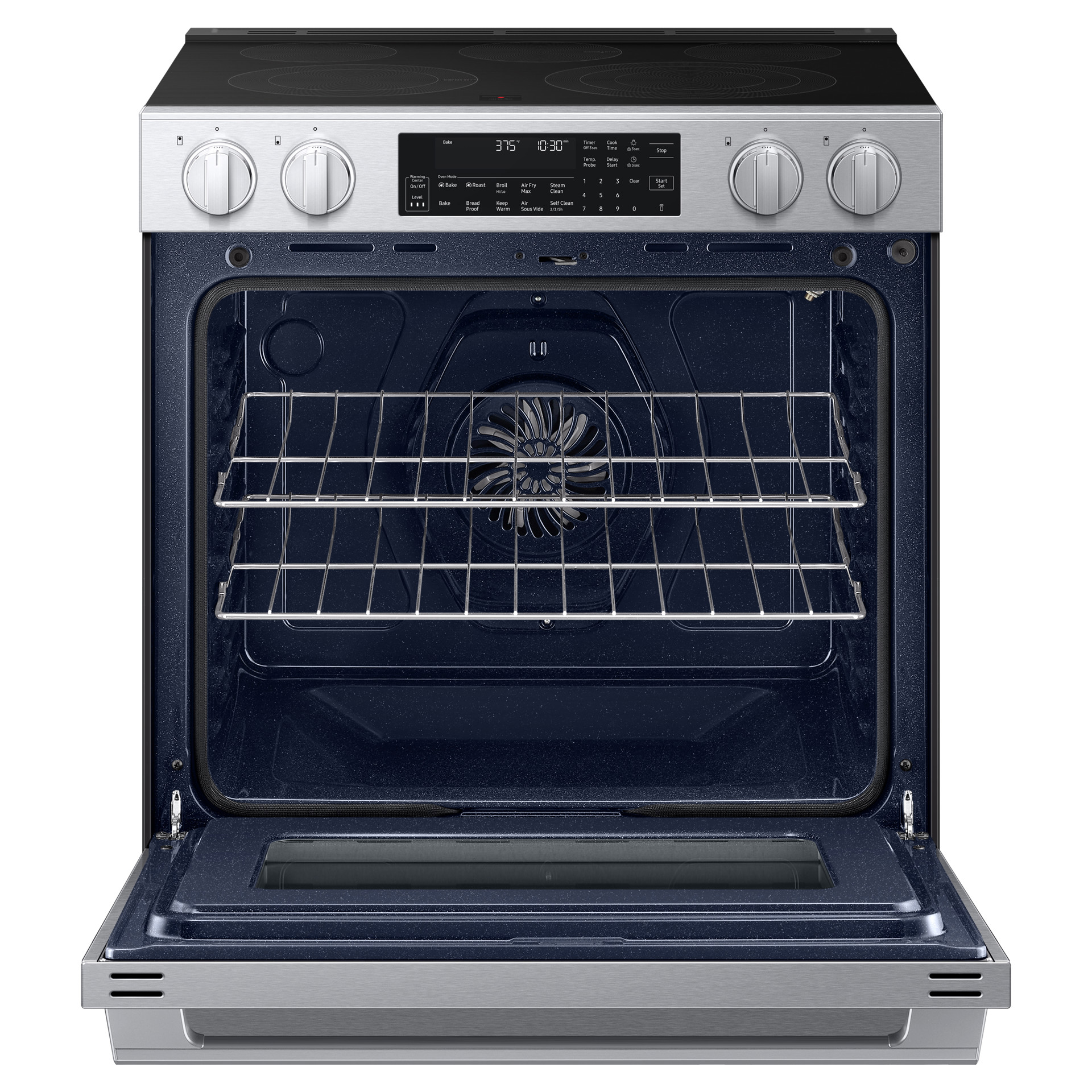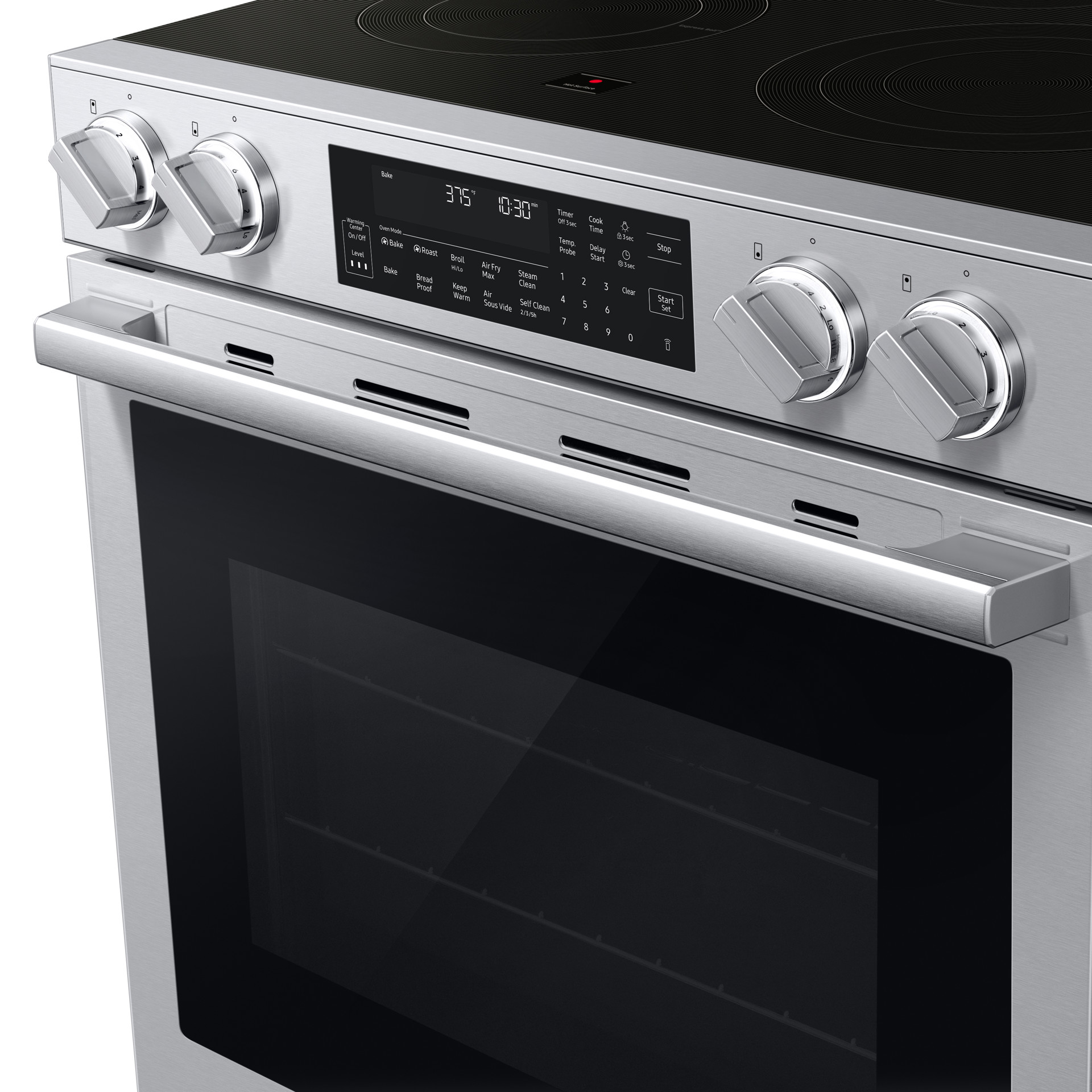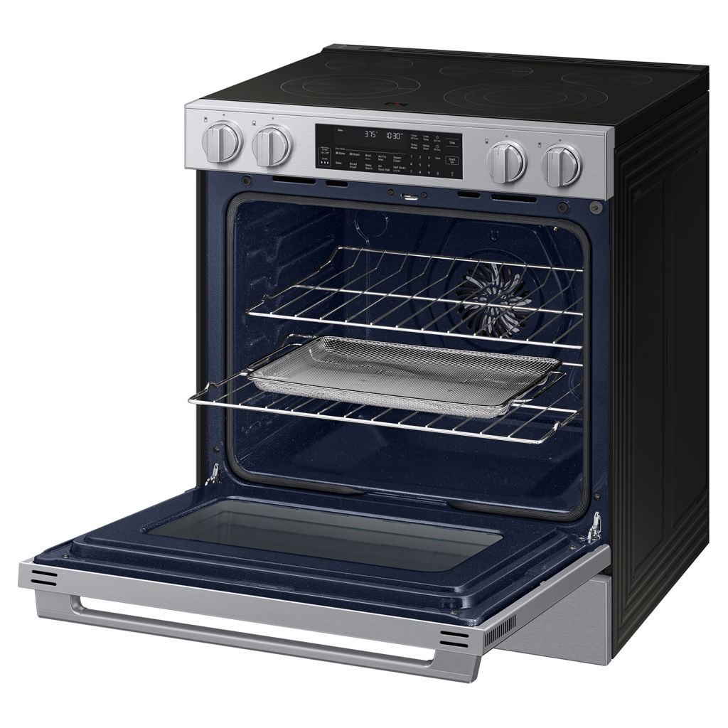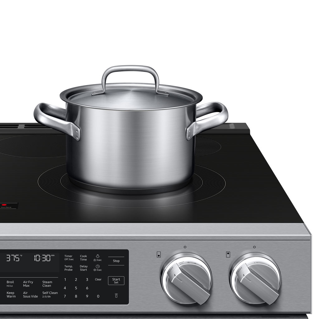 Restez connecté à votre four à partir de votre téléphone intelligent grâce au Wi-Fi intégré et à l’application SmartThings. Vous pouvez surveiller la cuisson, ajuster les réglages à distance, recevoir des alertes et même utiliser des assistants vocaux compatibles pour un contrôle mains libres.