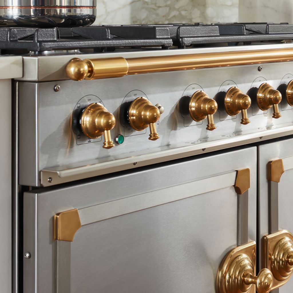 La CornuFé 110 impose son caractère par son format généreux et son design inspiré du style La Cornue. Avec ses finitions raffinées et sa conception soignée, elle devient un véritable élément central dans une cuisine de prestige. Elle exprime à la fois élégance et robustesse, conférant à l’espace une ambiance luxueuse et durable.