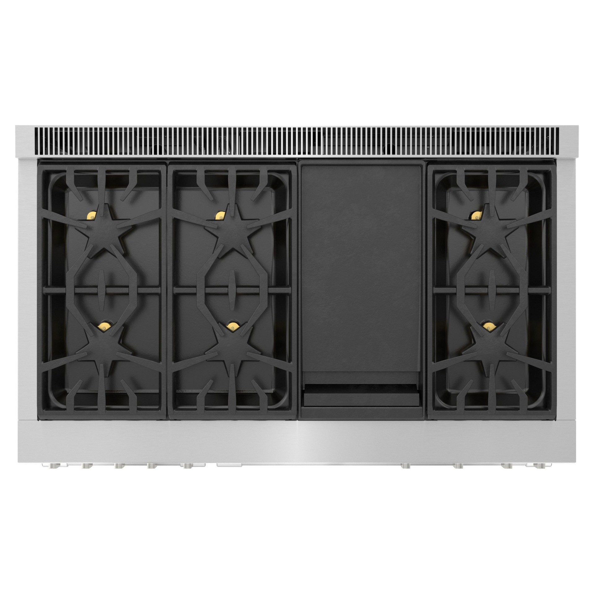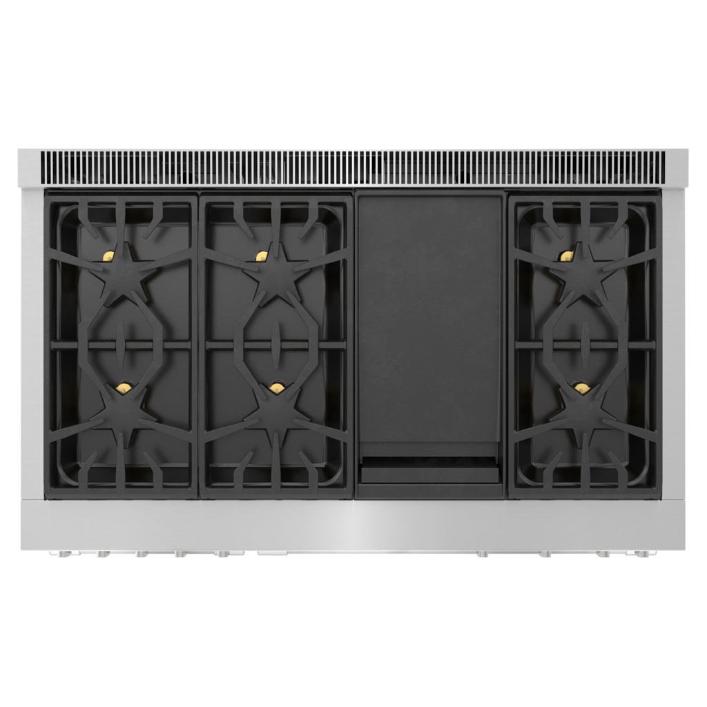 Cuisinière 2 fours bi-énergie de 48 po avec plaque chauffante