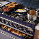 Une table de cuisson continue en fonte comprend cinq puissants brûleurs scellés en laiton qui facilitent le nettoyage et empêchent les déversements salissants d'atteindre le four ou les composants internes.