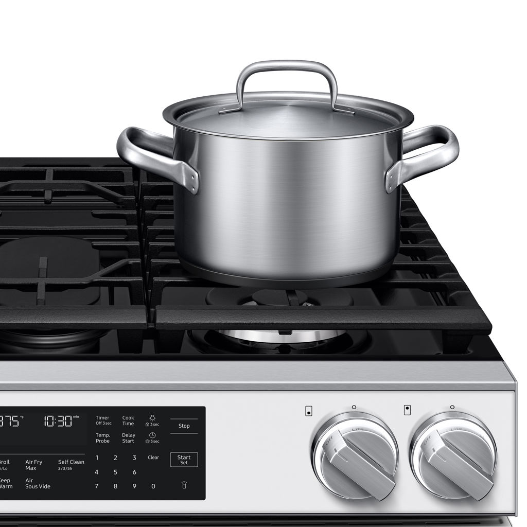 Préparez vos repas plus rapidement grâce au brûleur à gaz le plus puissant de Samsung. Idéal pour saisir les viandes, faire sauter ou porter l’eau à ébullition rapidement, il permet aussi un mijotage précis pour les sauces délicates.