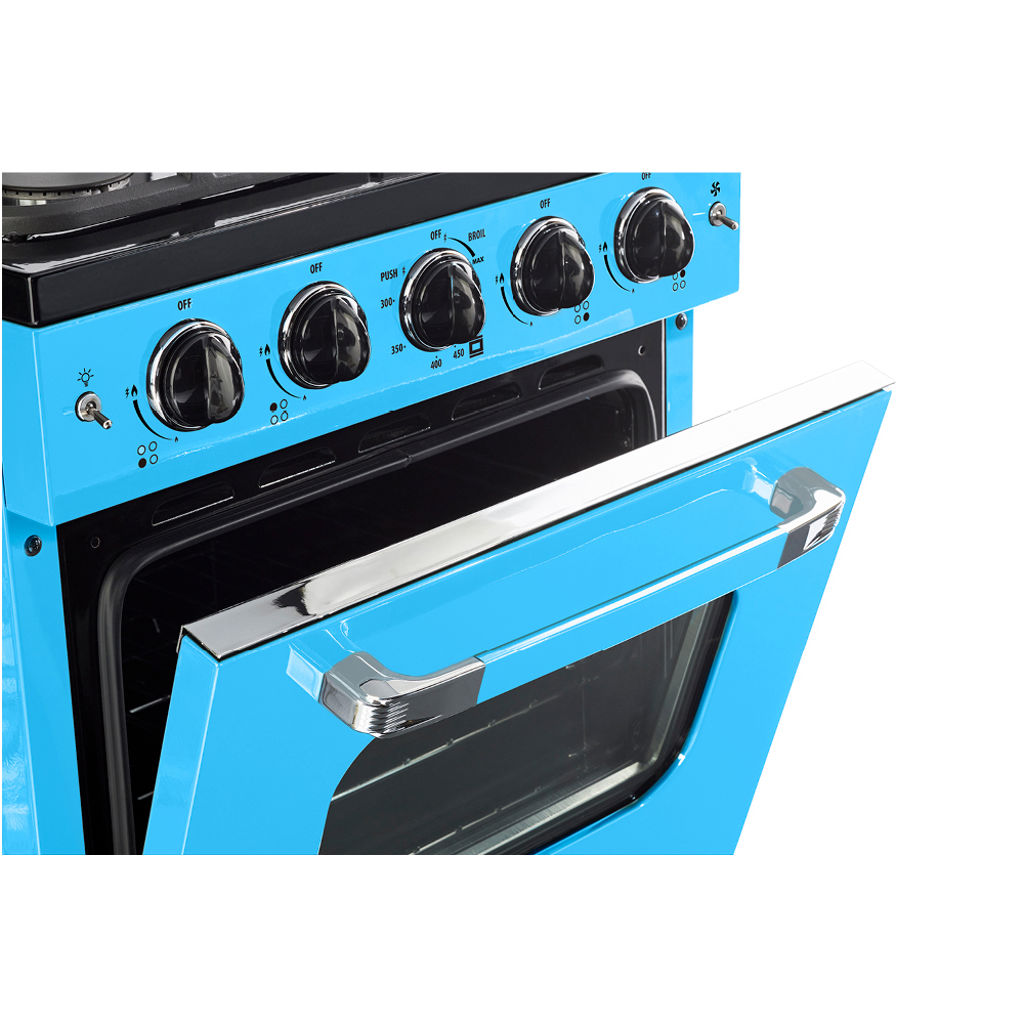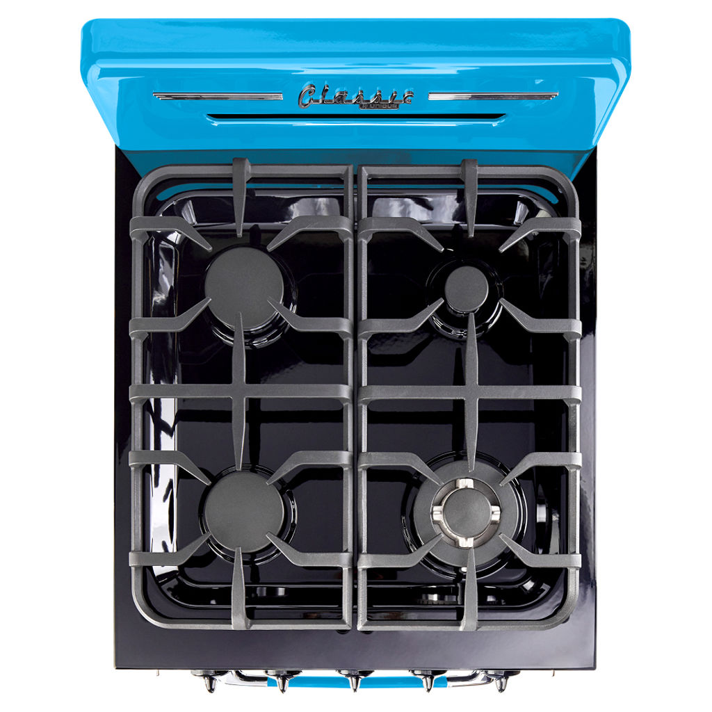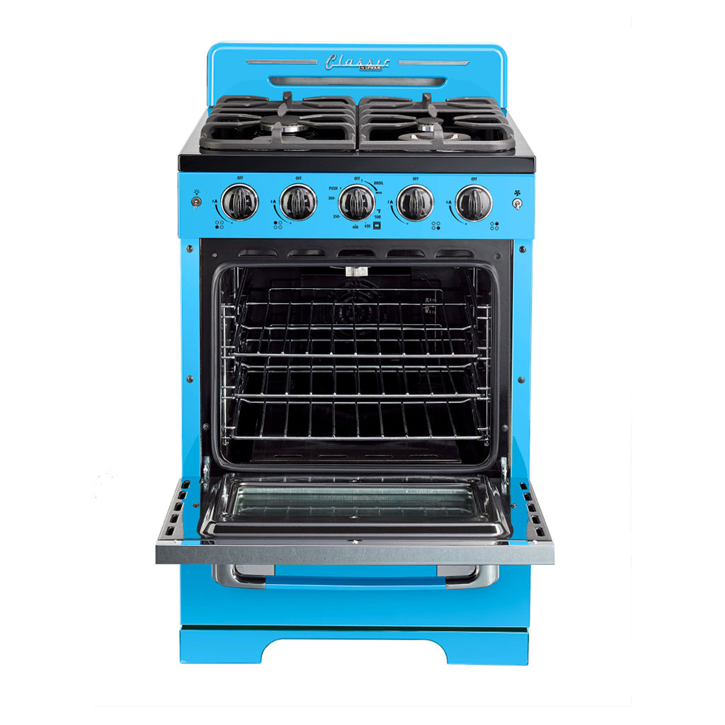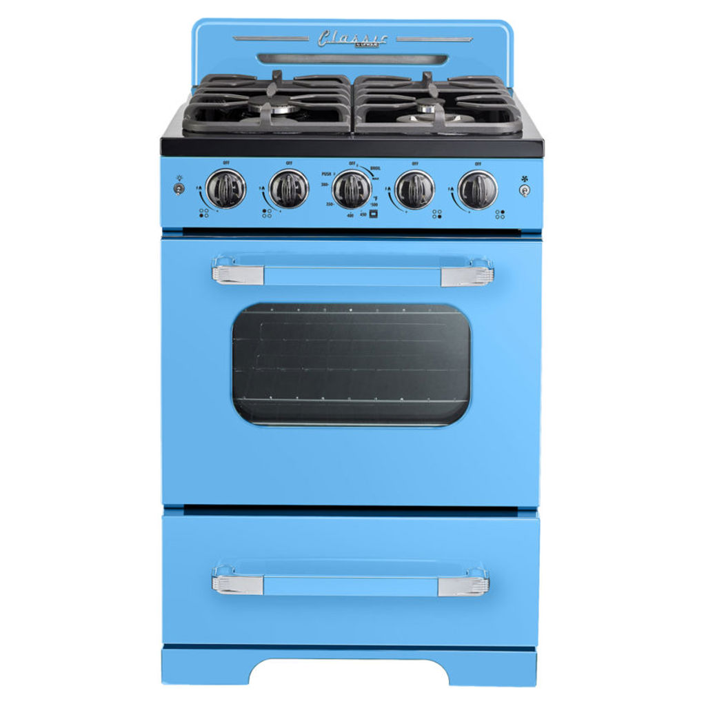Invitez un style inspiré des années 1950 dans votre cuisine avec la cuisinière à gaz Unique Classic Retro. Cette gamme autonome dispose d'un 2,9 cu. pi. capacité et 4 brûleurs avec une grille en fonte continue pratique. Il est équipé d'un ventilateur à convection pour une cuisson magnifiquement uniforme et d'un gril à hauteur de taille pour que vous puissiez dorer vos plats à la perfection.