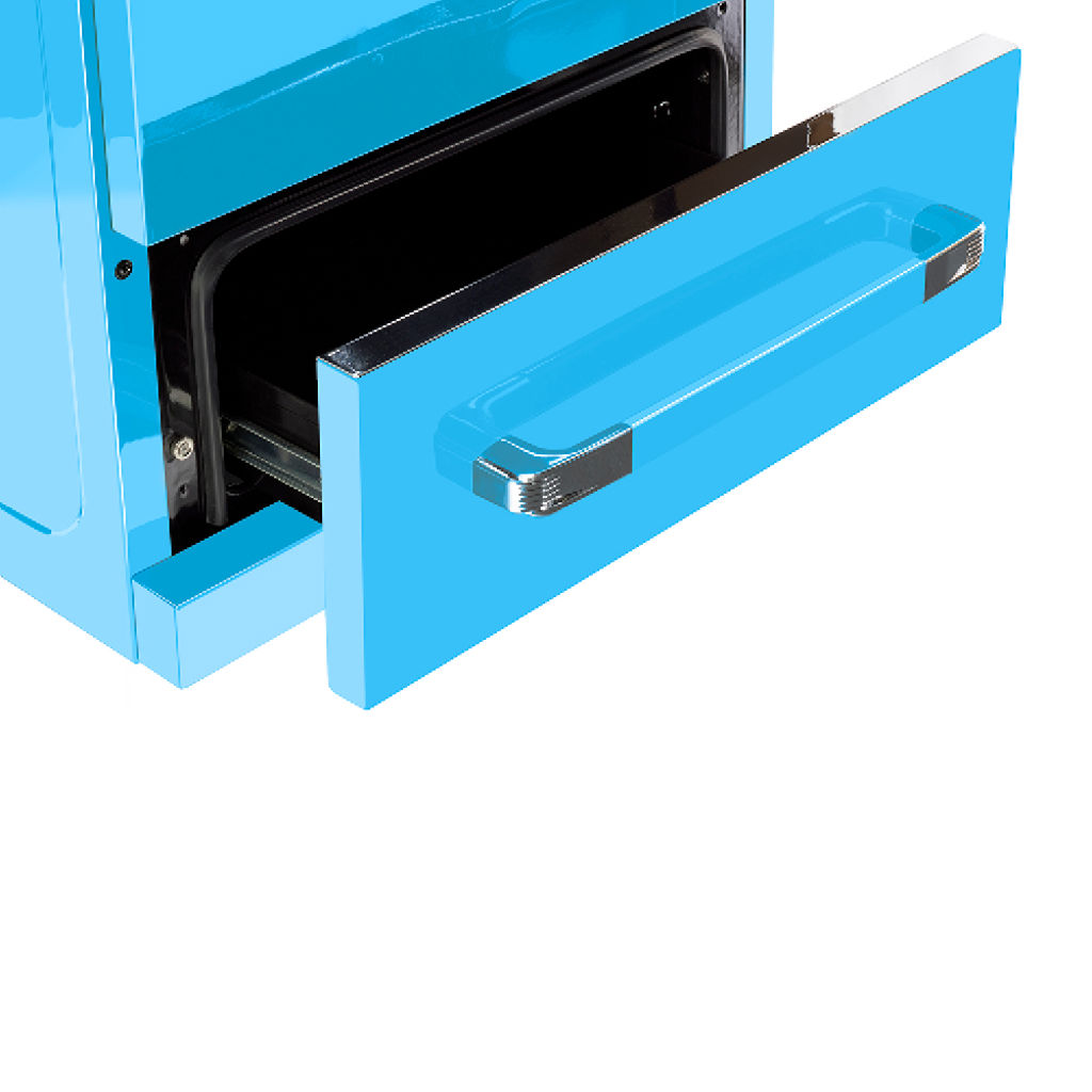 • Le tiroir de rangement intégré offre de l'espace pour les casseroles et les poêles