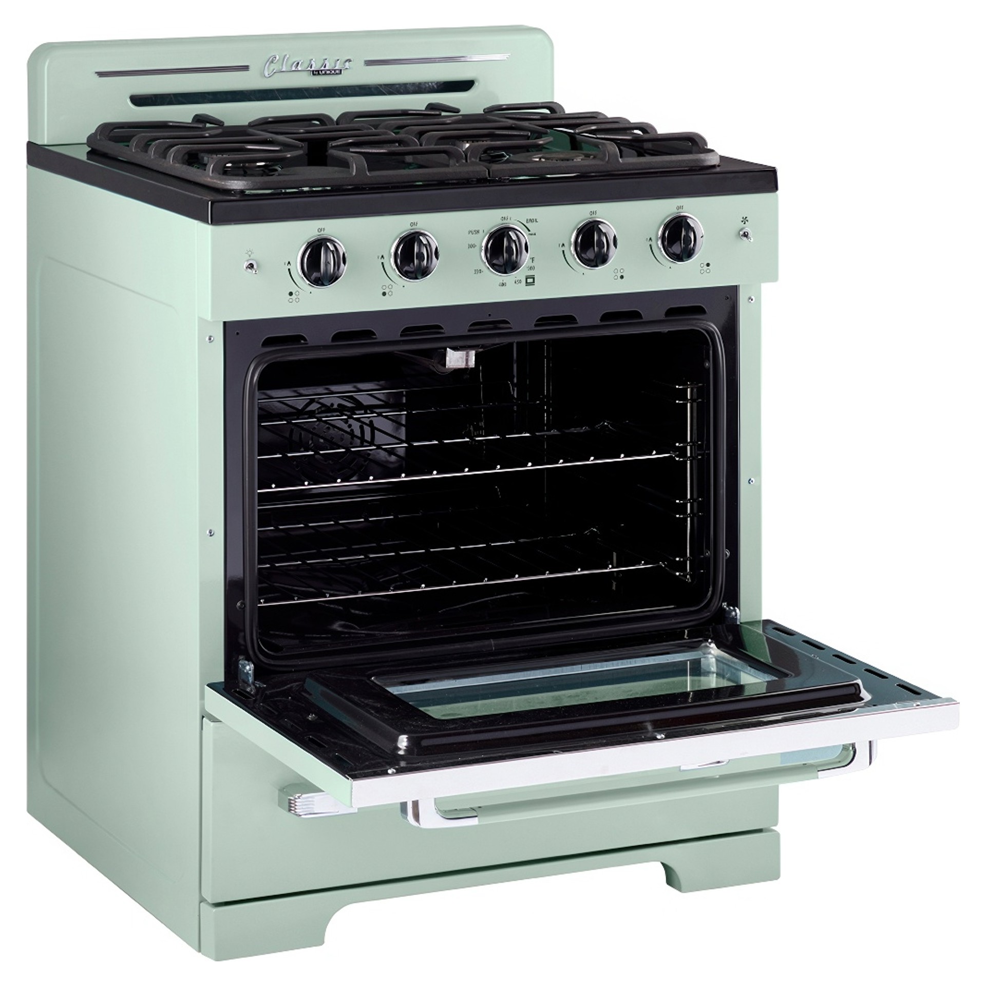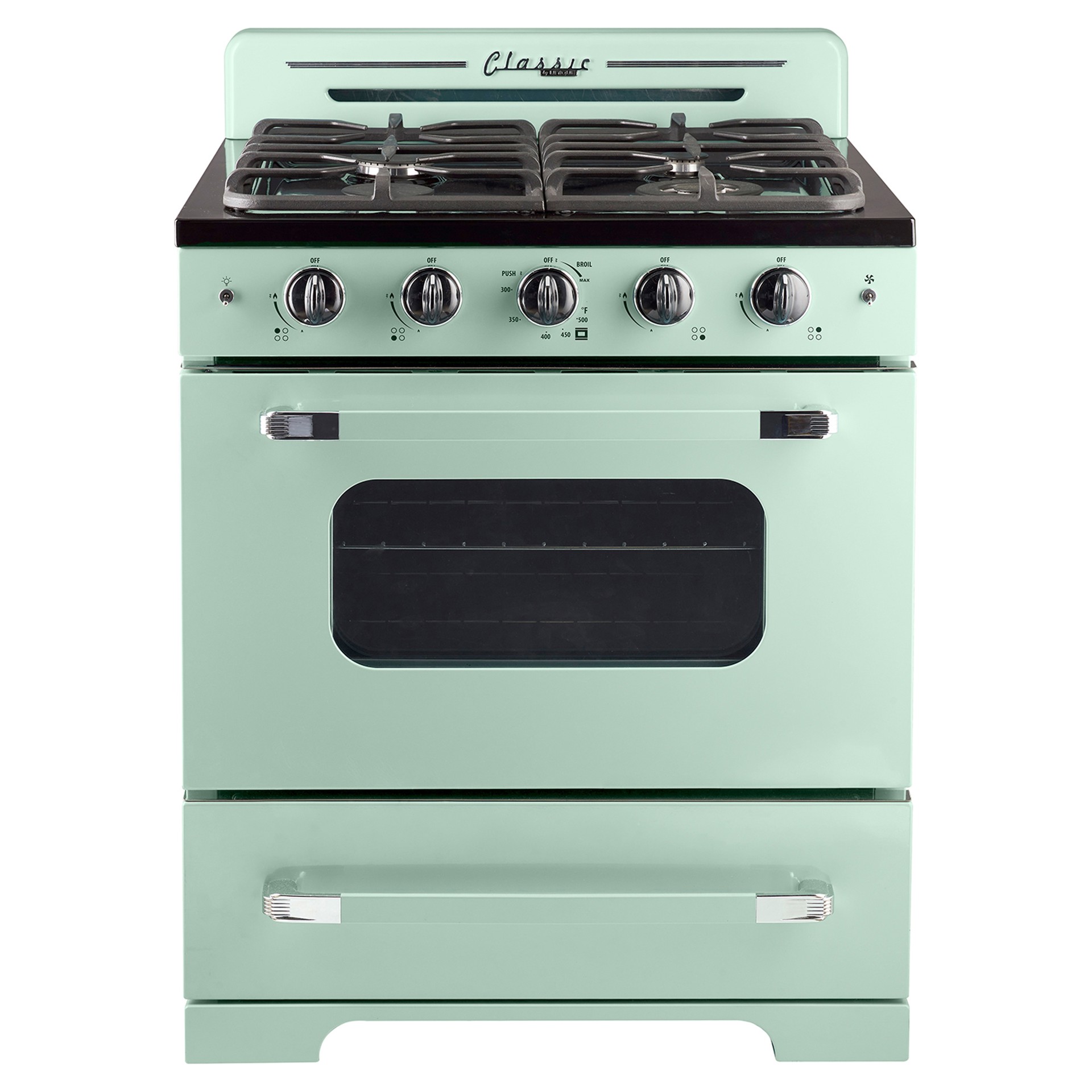 La gamme Classic Retro 30" d'Unique vous transporte dans les années 50 avec son design rétro emblématique et ses finitions chromées. La cuisson par convection fait circuler la chaleur pour une distribution incroyablement uniforme tandis que le gril à hauteur de taille offre l'option d'une cuisson intense. Des commandes simples et sans effort, élégamment conçues et disponibles dans une gamme de couleurs éclatantes au choix.