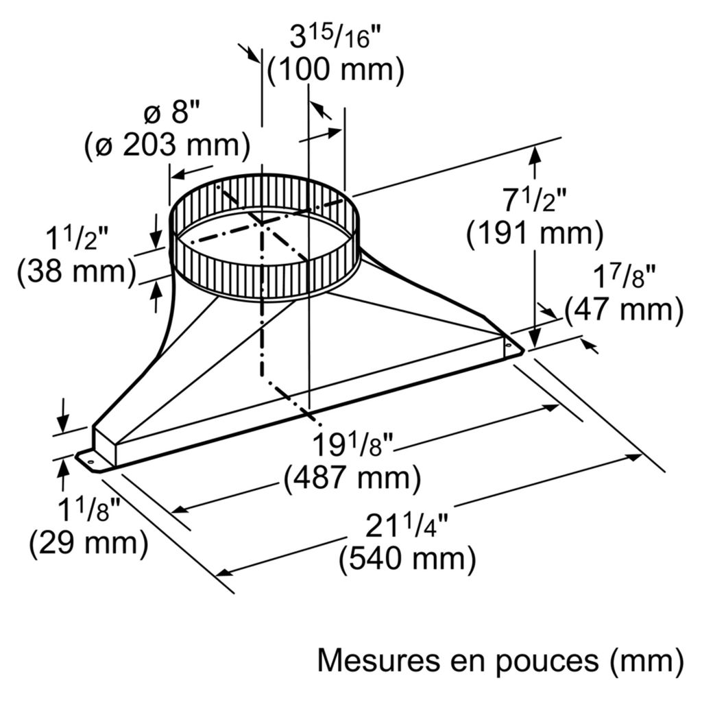 • Rectangulaire 1-7/8 po x Transition de 19" à 8" rond