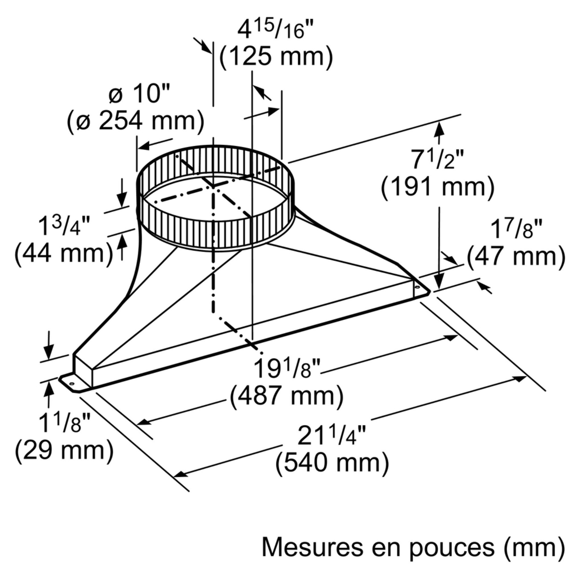 Transition latérale/arrière de 10 po pour évacuation descendante