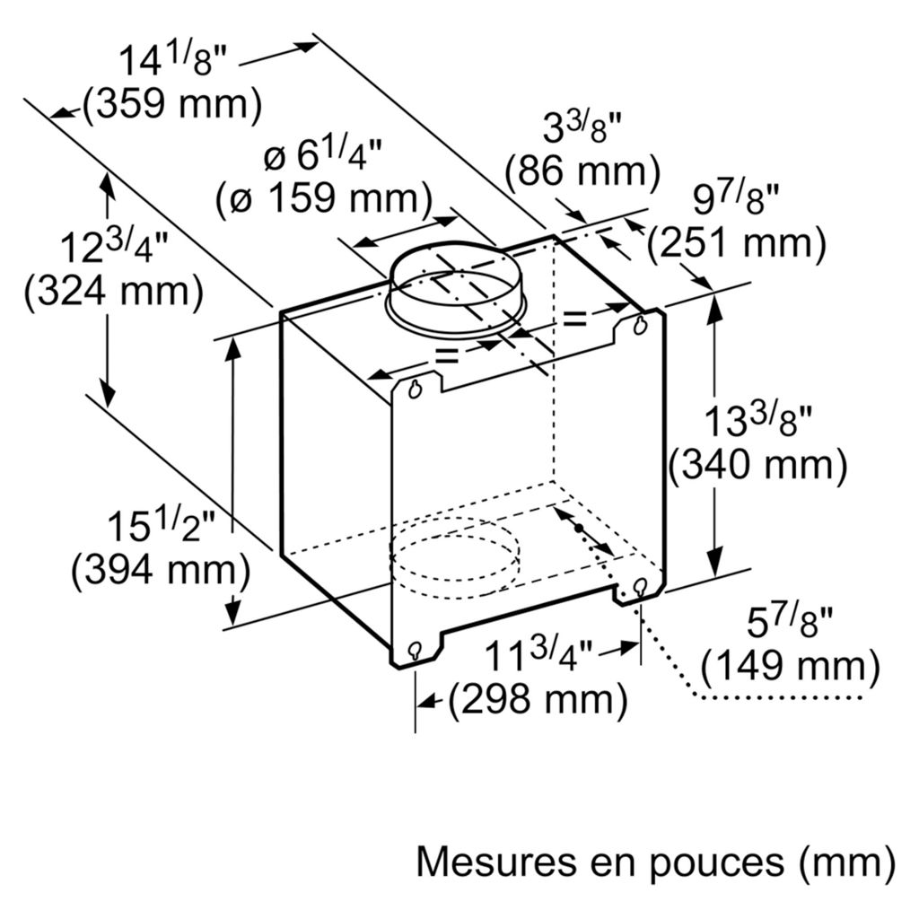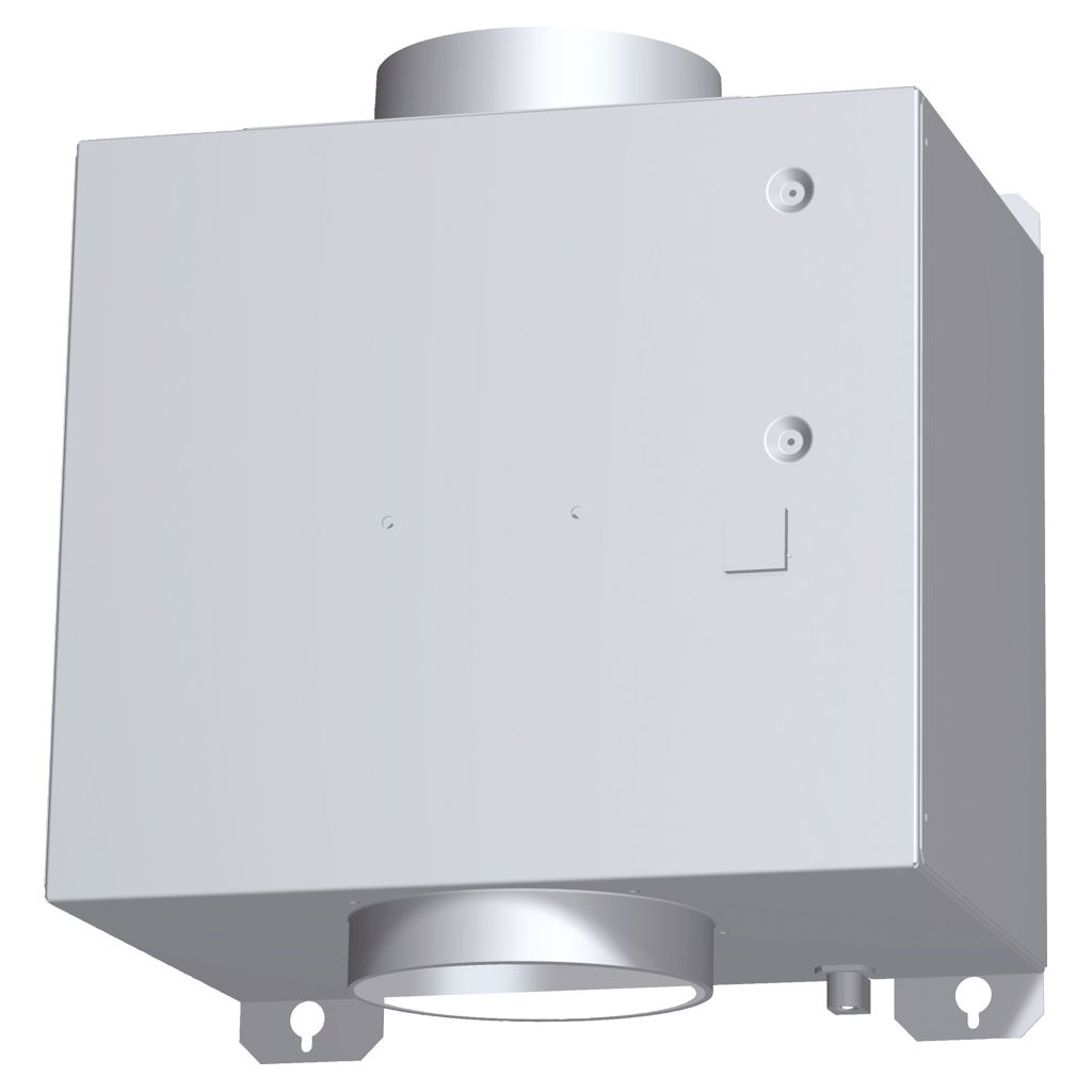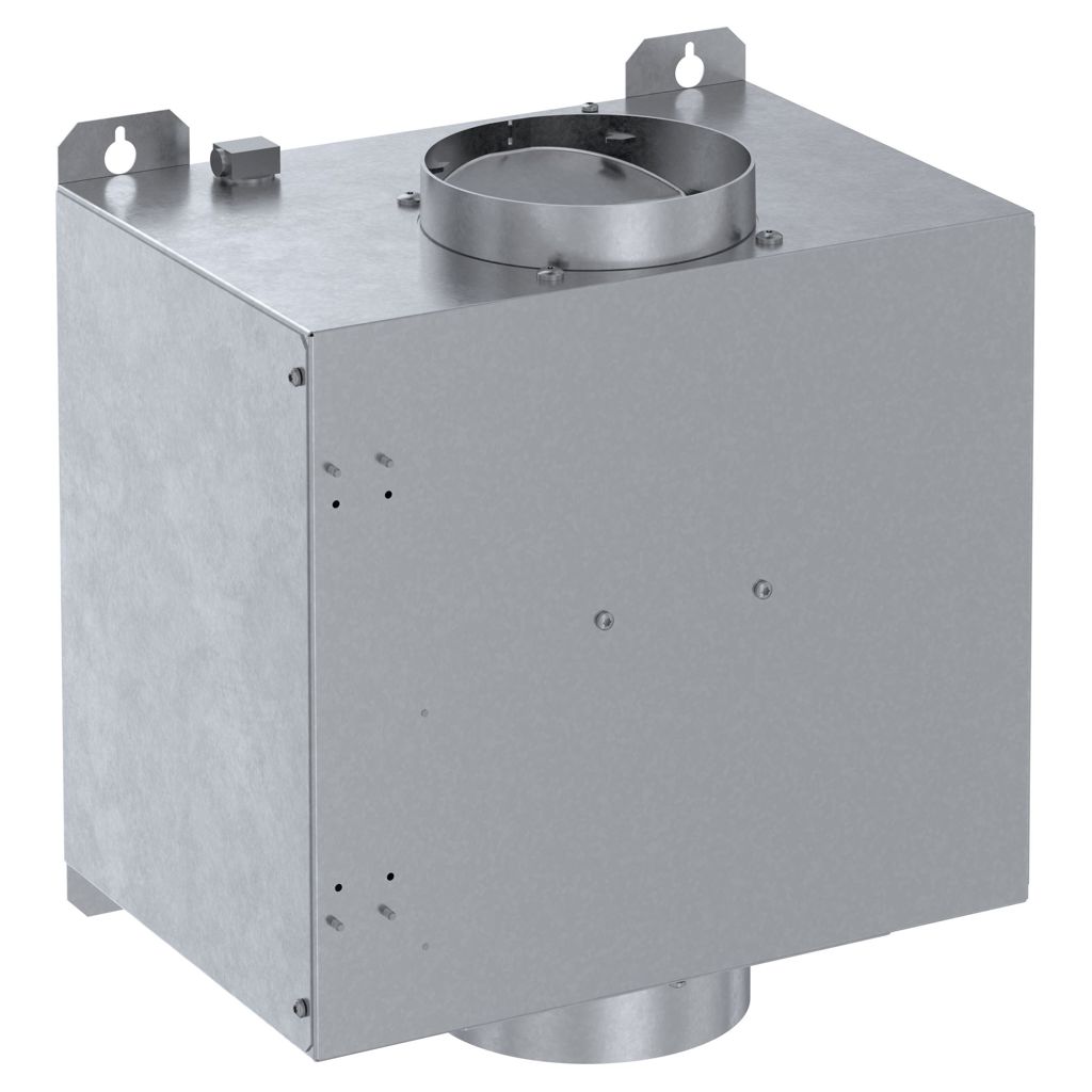 Il est conçu pour être fixé à l'extérieur de la hotte à aspiration descendante; on le fixe à l'intérieur de la maison, aux conduits du grenier ou du sous-sol.