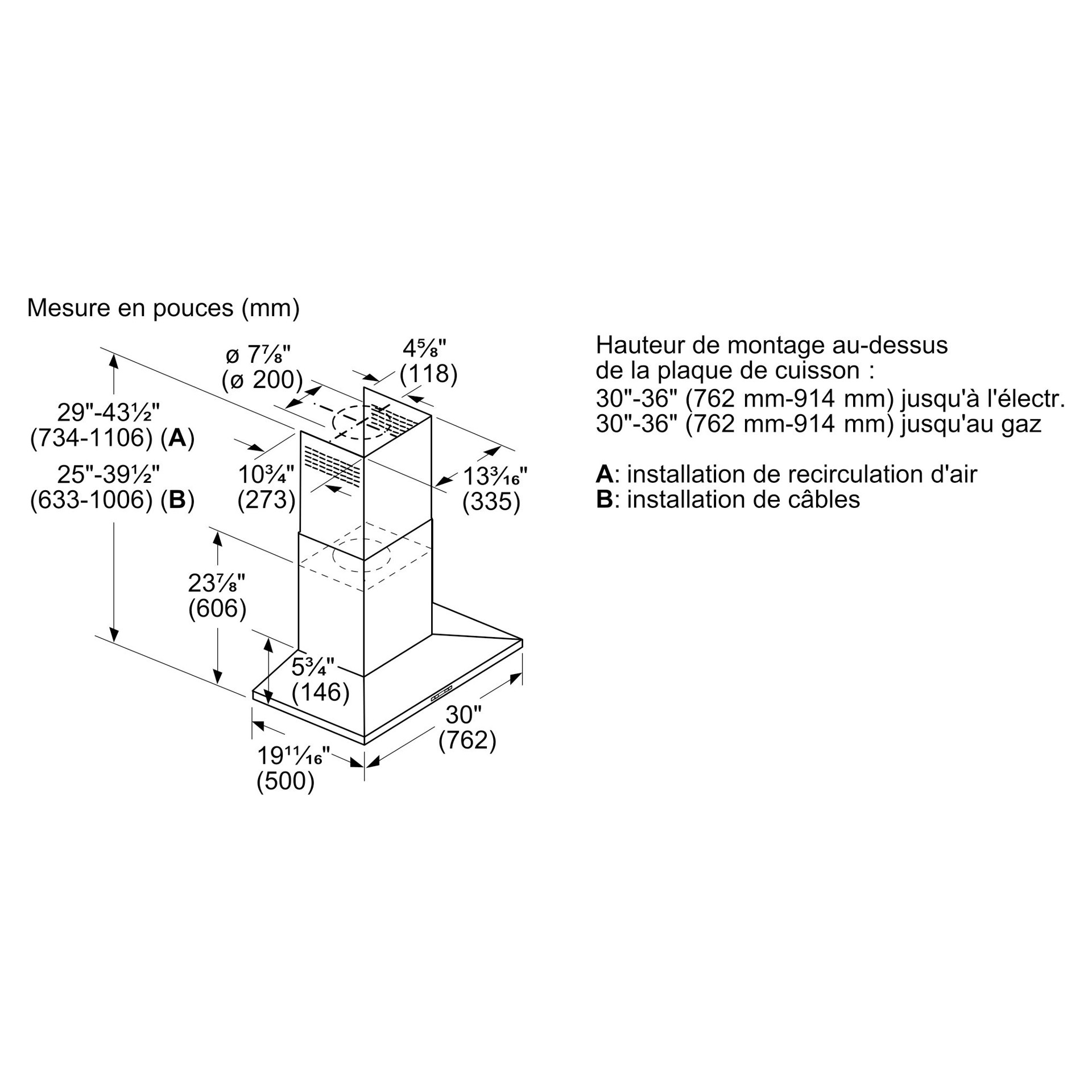 Hotte cheminée 30 po Série 500 Bosch HCP50652UC