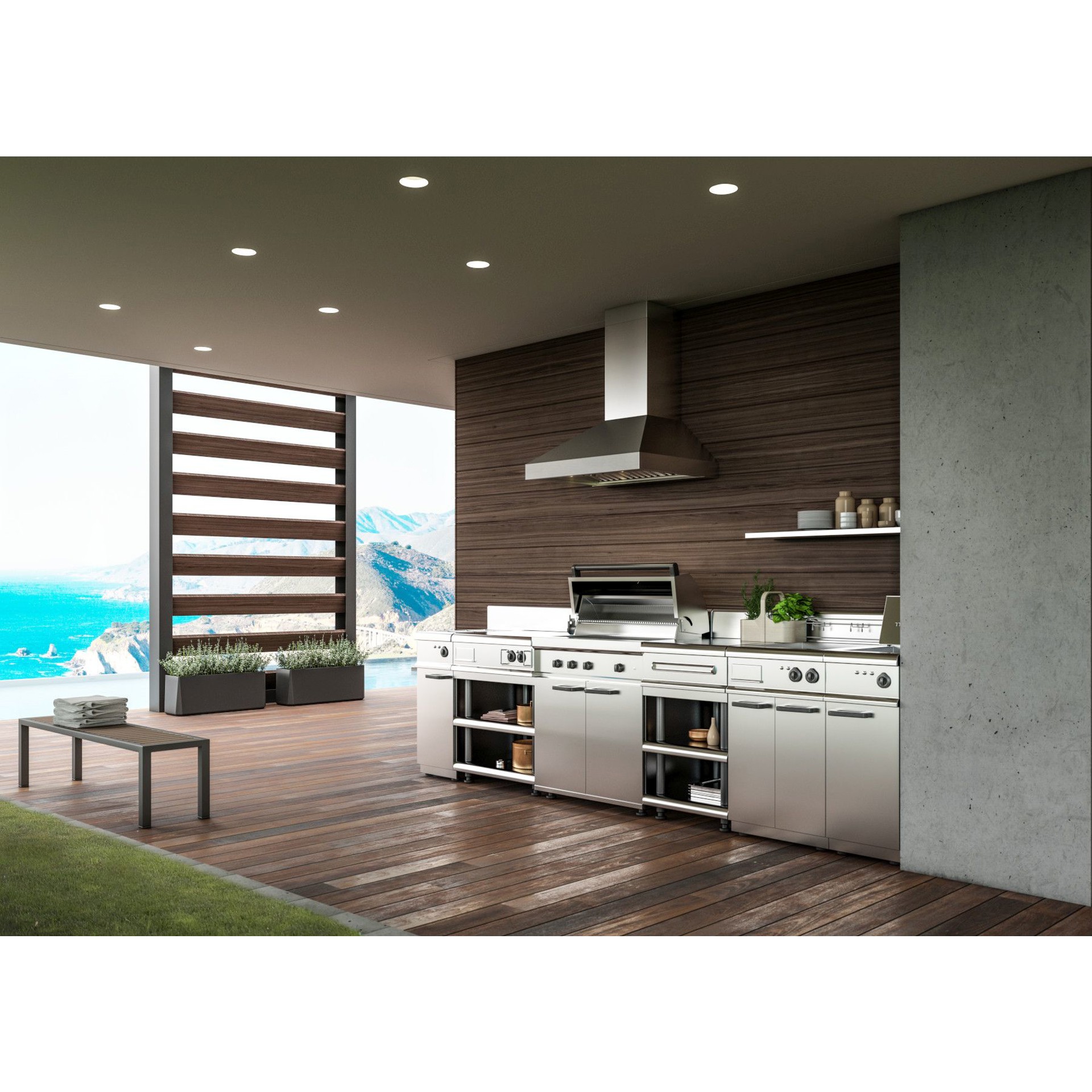 Cette hotte d’extérieur homologuée UL fait 30 pouces de profondeur pour une aspiration encore plus efficace. Grâce au ventilateur (modèle P12NA vendu séparément) de 1300 pi³/min à puissance maximale, cette hotte ne craint ni la chaleur ni la fumée des grils d’extérieur. Les commandes sont conçues pour résister à la chaleur et à l’humidité. Homologuée UL pour utilisation dans les lieux humides.