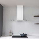 Niché discrètement entre la cheminée et son anneau extérieur, l'auvent en verre de Modena ajoute une touche de légèreté et renforce la symétrie et le design discret de la hotte.