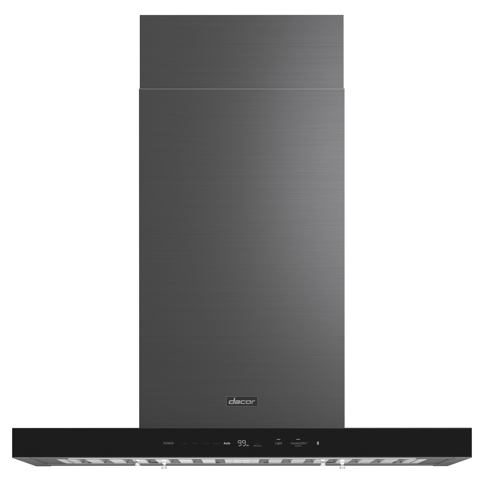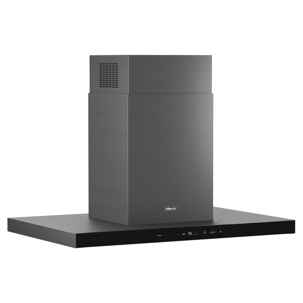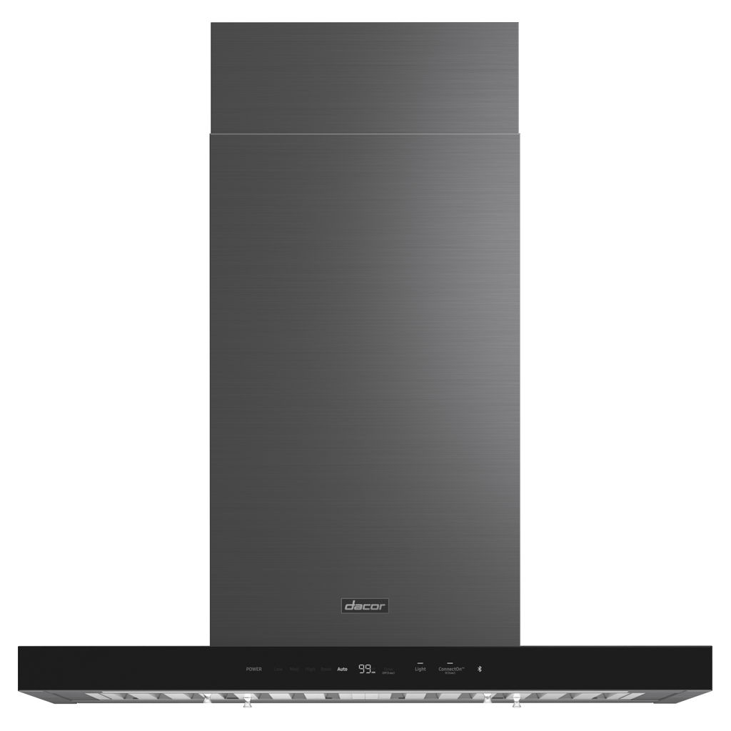 La hotte pour îlot est conçue avec des lignes élégantes, un éclairage à DEL et une commande tactile en verre sophistiquée qui se connecte et s’apparie parfaitement à votre produit de cuisine Dacor compatible.