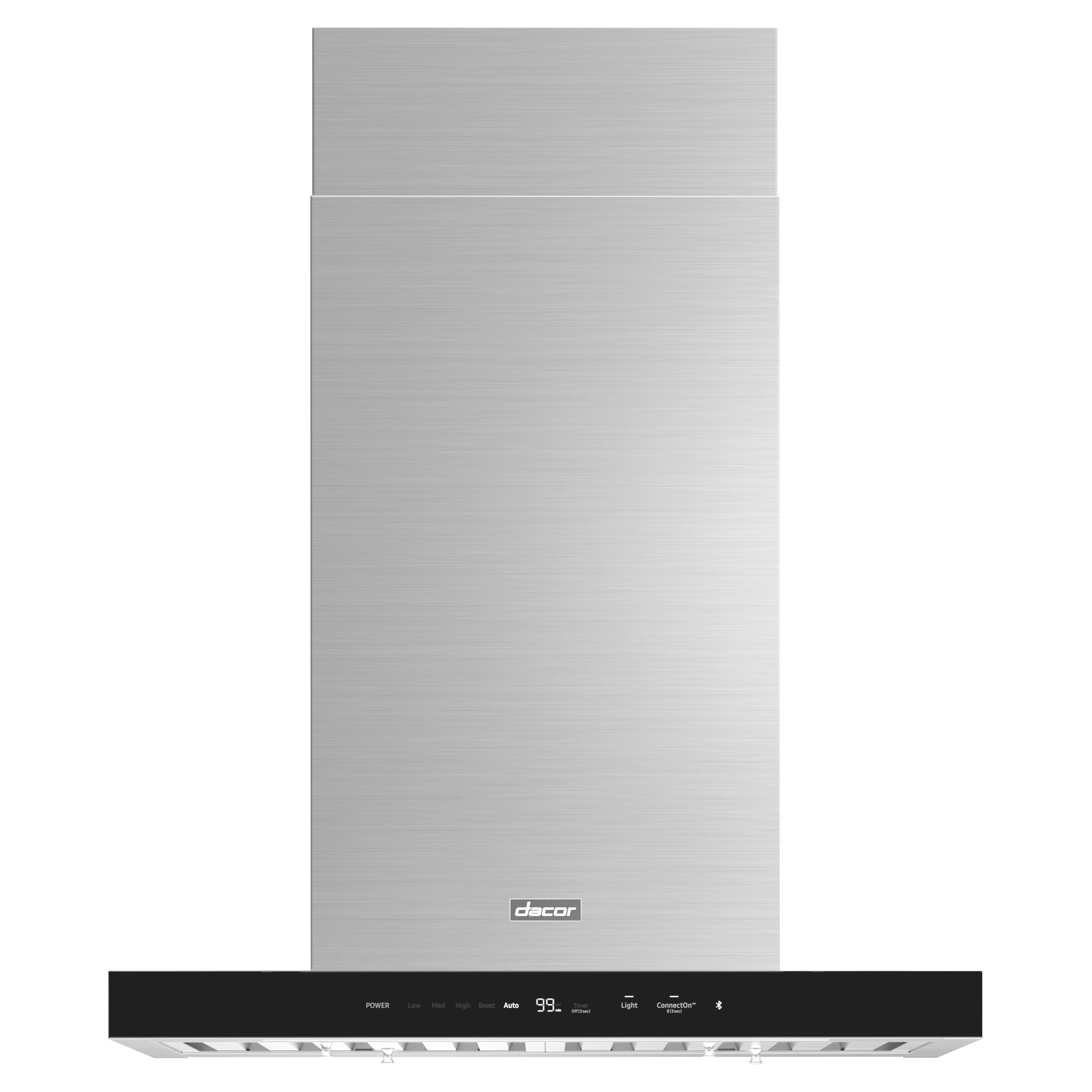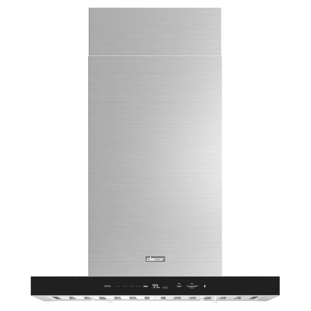 La hotte îlot est conçue avec des lignes élégantes, un éclairage LED et une commande tactile en verre sophistiquée qui se connecte et s'associe parfaitement à votre produit de cuisson Dacor compatible.