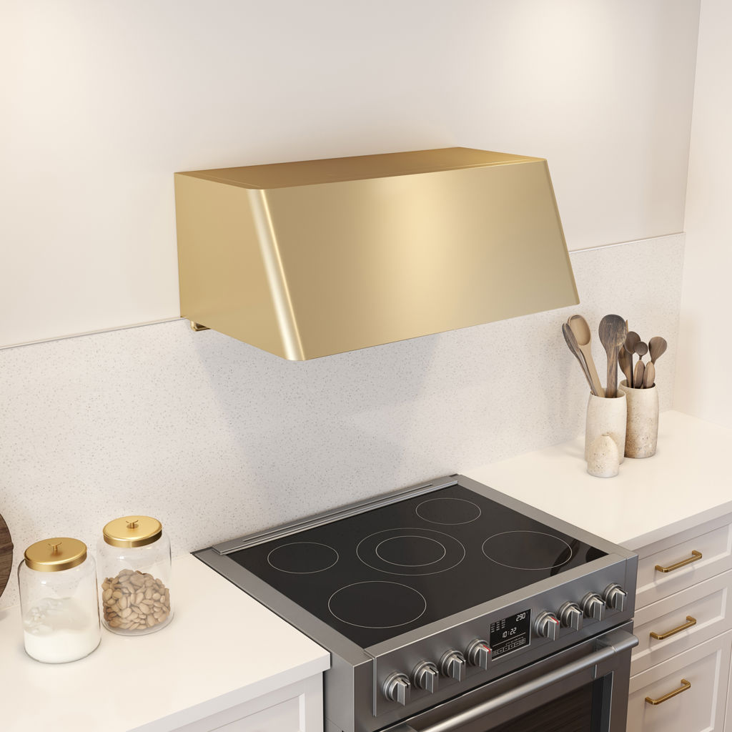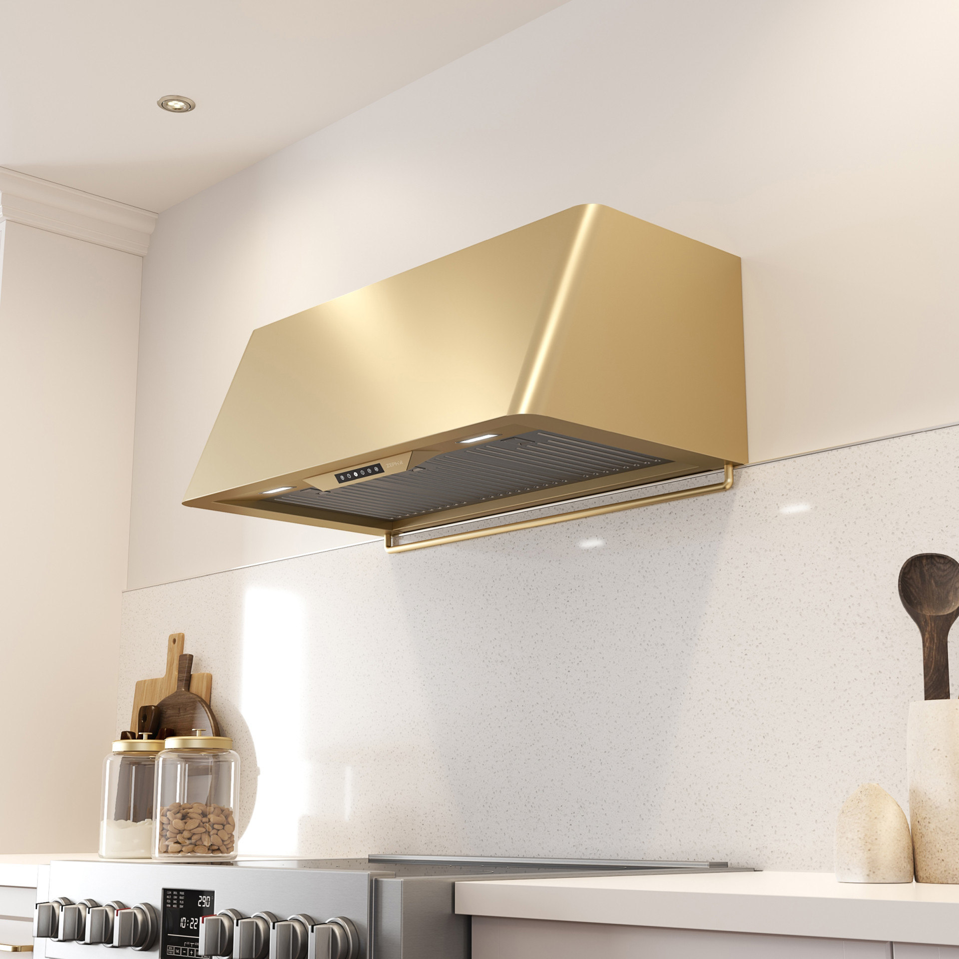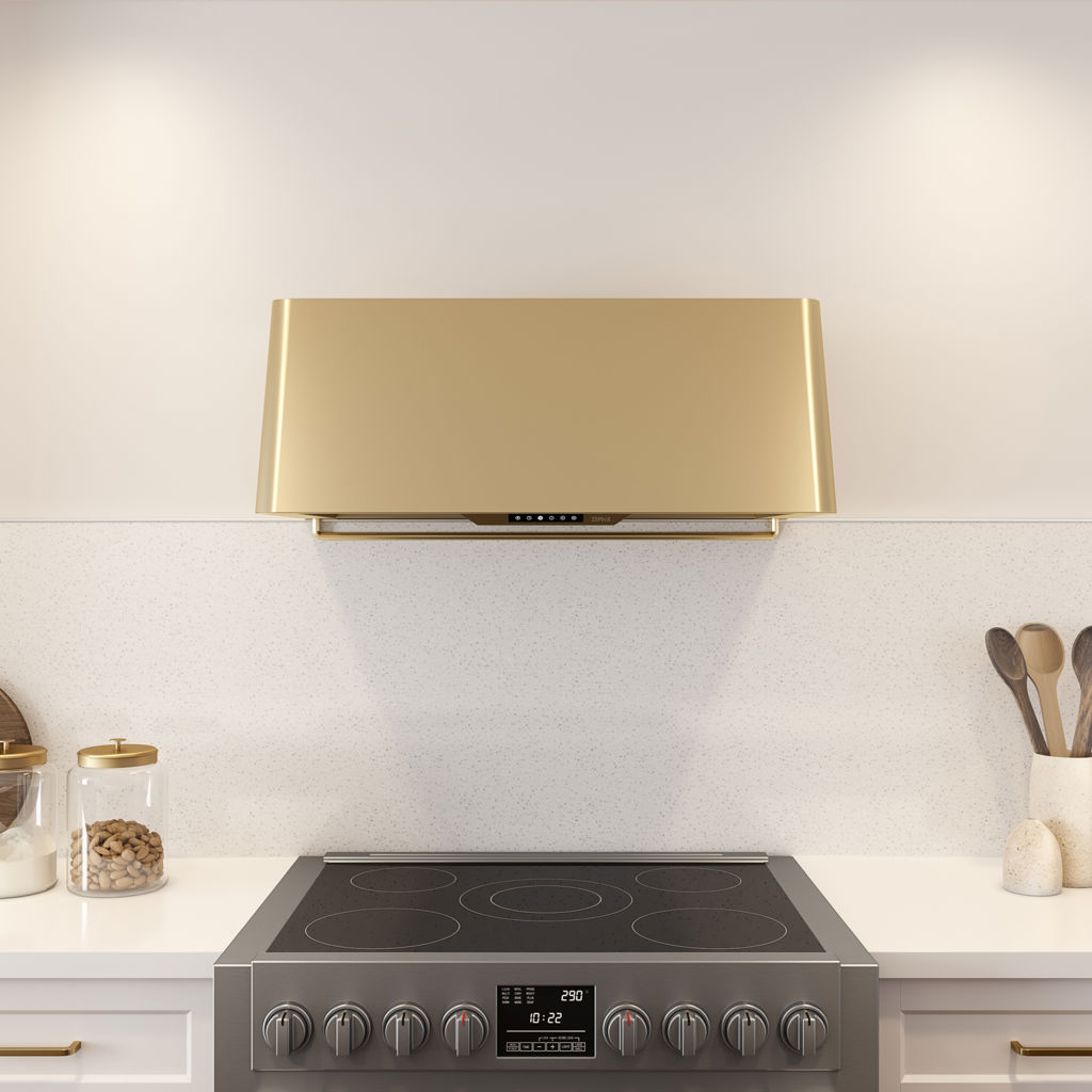 Portant le glamour de la cuisine vers de nouveaux sommets, la hotte murale Mesa est disponible en trois finitions haut de gamme : or satiné, noir mat et acier inoxydable, pour s'inscrire dans les dernières tendances en matière de design de cuisine.