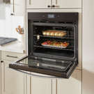 Faites cuire des aliments tels que le poulet et la dinde avec le réglage de rôtissage par convection qui utilise la chaleur élevée des éléments de cuisson, de grillage et de convection avec le ventilateur pour faire circuler l'air autour de la cavité du four.