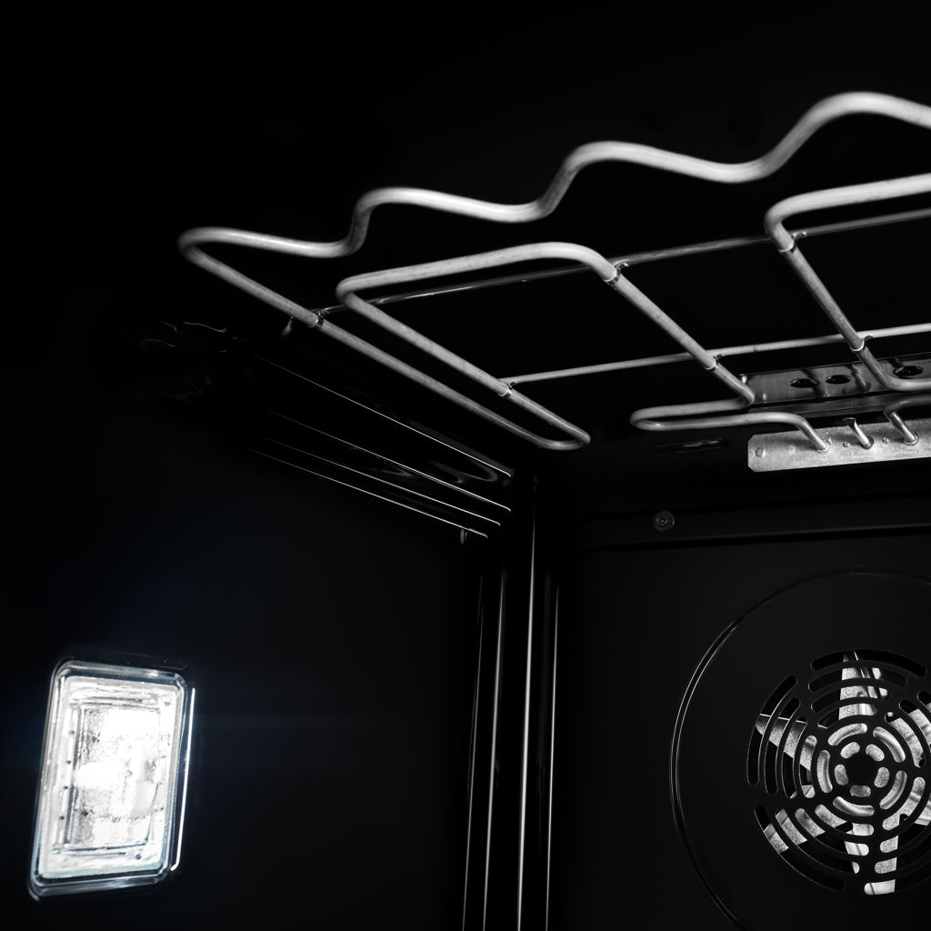 Une chaleur constante circulant par des lames métalliques tourbillonnantes se tisse autour de chaque support. Exercez vos prouesses culinaires, des pâtisseries feuilletées appétissantes aux rôtis irrésistibles.