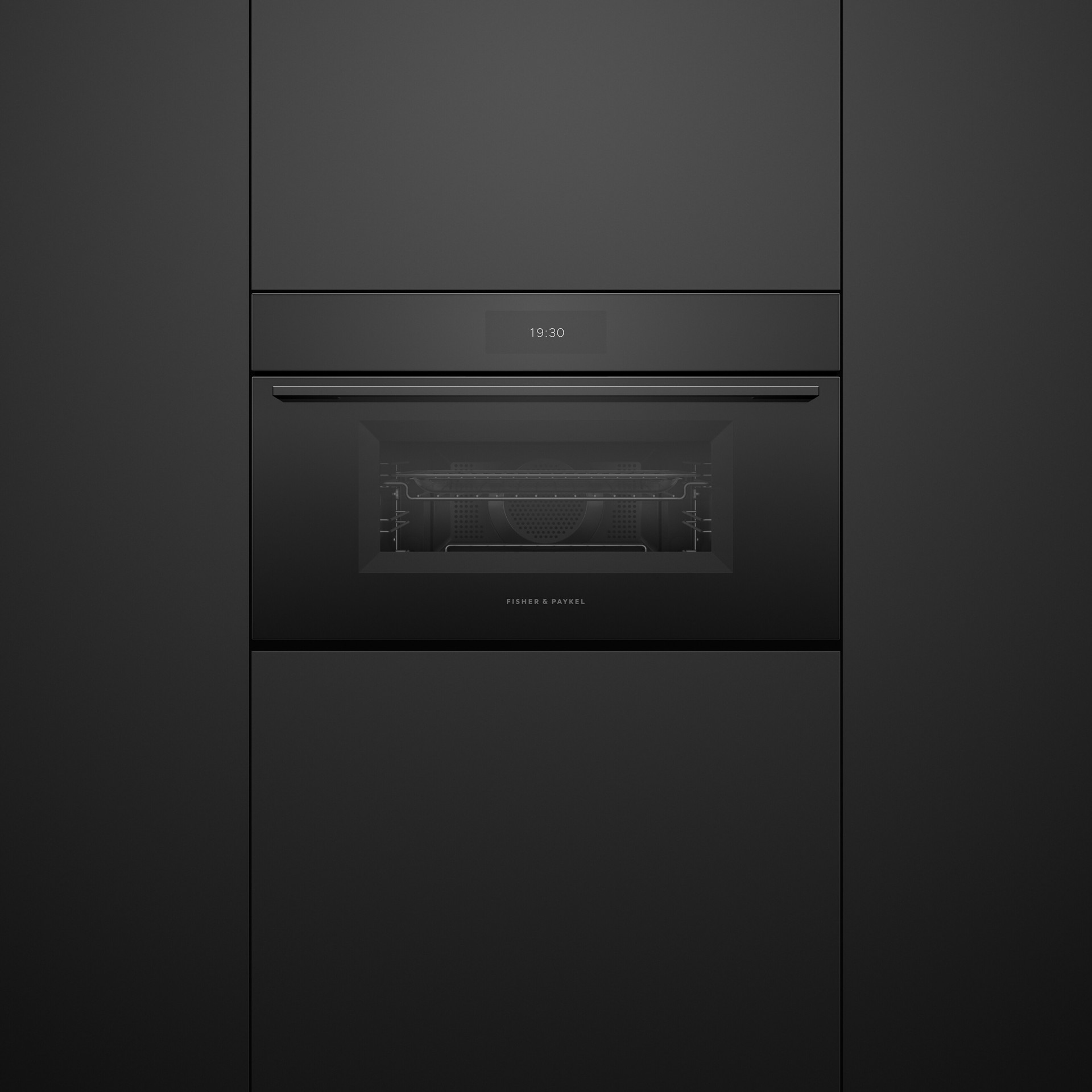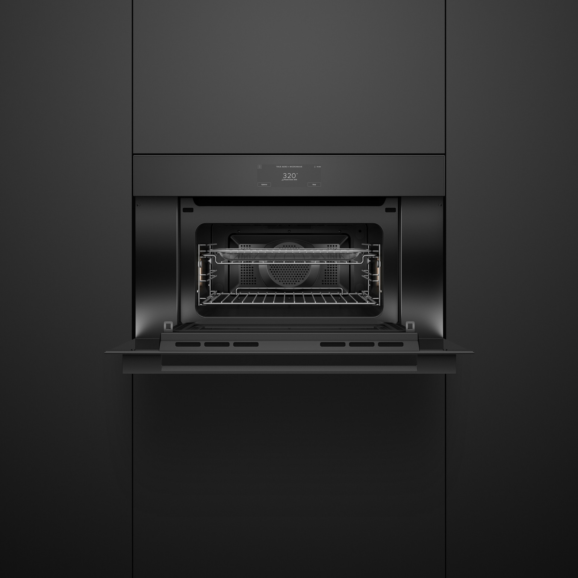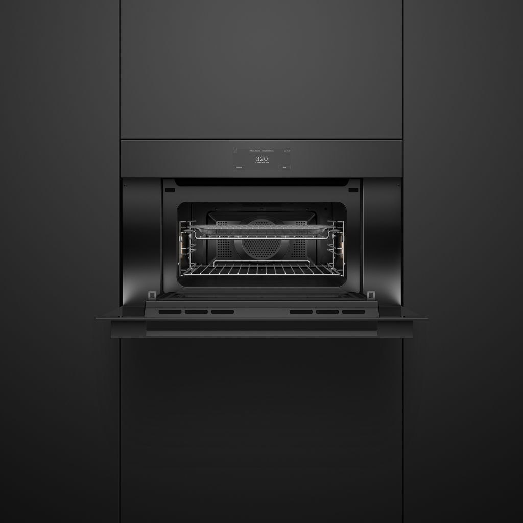 Chaque détail de nos appareils au style minimaliste a été conçu avec une précision méticuleuse. Avec leur finition en verre noir, leur poignée raffinée et leur écran tactile intuitif de 6,8 pouces, tous les éléments s'harmonisent parfaitement. Créez la cuisine de vos rêves grâce à notre gamme de fours et accessoires, pour un rendu homogène et élégant, installés côte à côte ou superposés – avec un jeu minimal de 1,5 mm. L'alliance parfaite du style et de la précision pour votre cuisine.