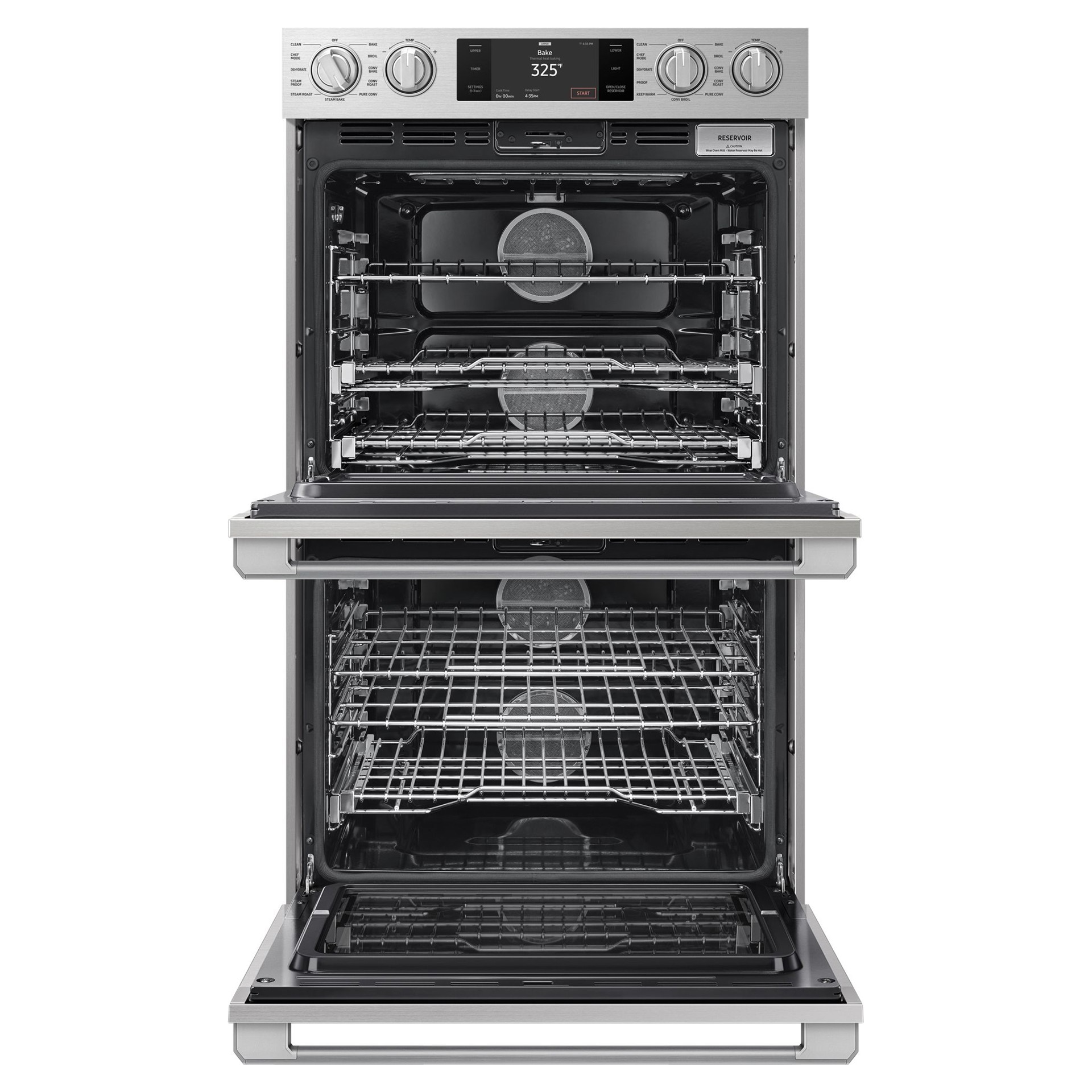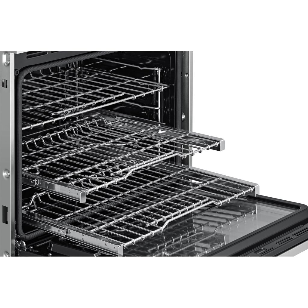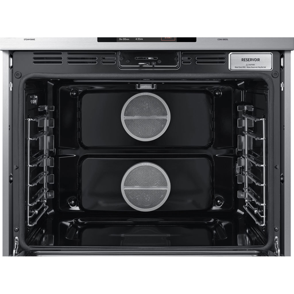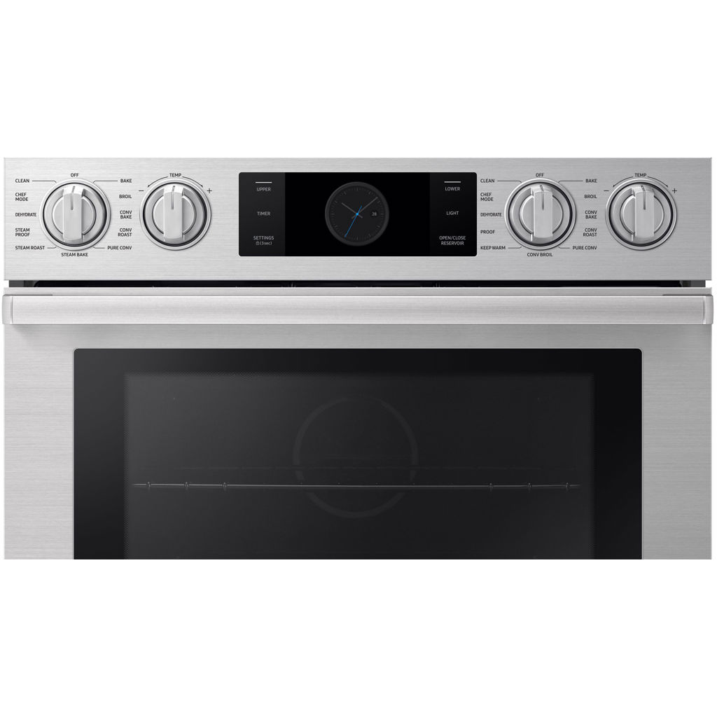 Le four mural double de 30 po comprend la double convection pure en quatre parties pour un temps de cuisson réduit et une consistance supérieure sans transfert de saveur. Un panneau de commande tactile LCD de 7 po compatible Wi-Fi et des boutons éclairés par LED offrent une commodité et la possibilité d'utiliser l'intégration SmartThings. pour la communication entre les appareils ainsi que la surveillance et le fonctionnement à distance.